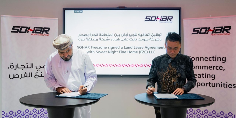 وقّع ميناء صحار والمنطقة الحرة على اتفاقية تأجير أرض مع شركة سويت نايت فاين هوم لإنشاء مصنع لإنتاج المراتب في المنطقة الحرة بصحار.