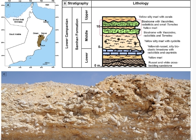 وتمثلت مشاركة المهندسة والباحثة نجاة الفضيلي من أكاديمية الابتكار الصناعي، في دراسة علمية تناولت استجابة الكائنات البحرية القديمة – التي عاشت قبل أكثر من 60 مليون عام – للتغيرات البيئية في موقع “سايوان” الجيولوجي بسلطنة عُمان، وهو أحد أبرز المواقع الجيولوجية ذات القيمة العلمية العالية.