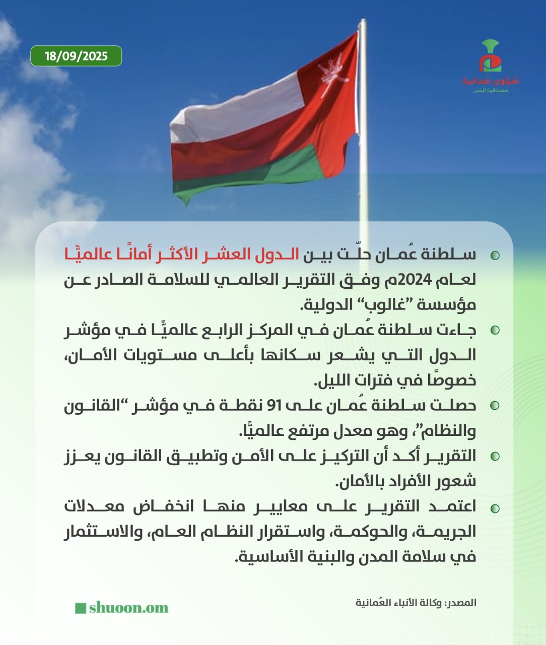 سلطنة عُمان ضمن أكثر 10 دول أمانًا في العالم لعام 2024