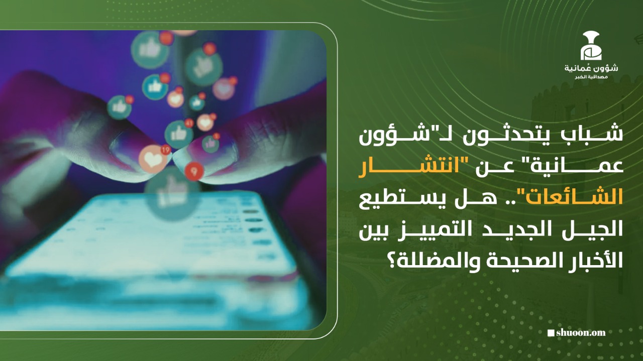 وبين سرعة انتشار الشائعات وتوفير قنوات رسمية للرد عليها، يبرز تساؤل حول كيفية تعامل الشباب العُماني مع هذه الظاهرة، وكيف يؤثر تداول الشائعات على ثقة الشباب في وسائل الإعلام التقليدية مقابل الإعلام الرقمي؟