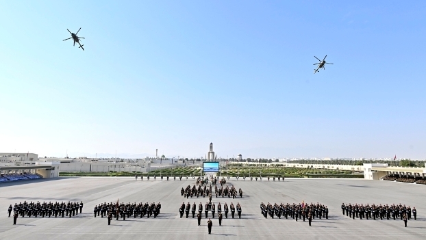 بعدها ردد طابور الاستعراض نشيد الحرس السُّلطاني العُماني صاحبه عرض مظلي قدمه فريق الحرس السُّلطاني العُماني للقفز الحُر، ثم ردد الخريجون نداء التأييد، وهتفوا ثلاثا بحياة حضرةِ صاحبِ الجلالةِ السُّلطان هيثم بن طارق المعظم القائد الأعلى /حفظهُ اللهُ ورعاهُ/ ثم تقدم الطابور بهيئة الاستعراض للأمام، وفي الختام عُزِف السلام السُّلطاني، ثم استأذن قائد الطابور بالانصراف من الميدان، حيث مرت الطوابير من أمام المنصة الرئيسة للاحتفال بالمسير العادي بمصاحبة موسيقى الحرس السُّلطاني العُماني ومشاركة خيالة الحرس السُّلطاني العُماني، معلنين بذلك انتهاء مراسم الاحتفال.