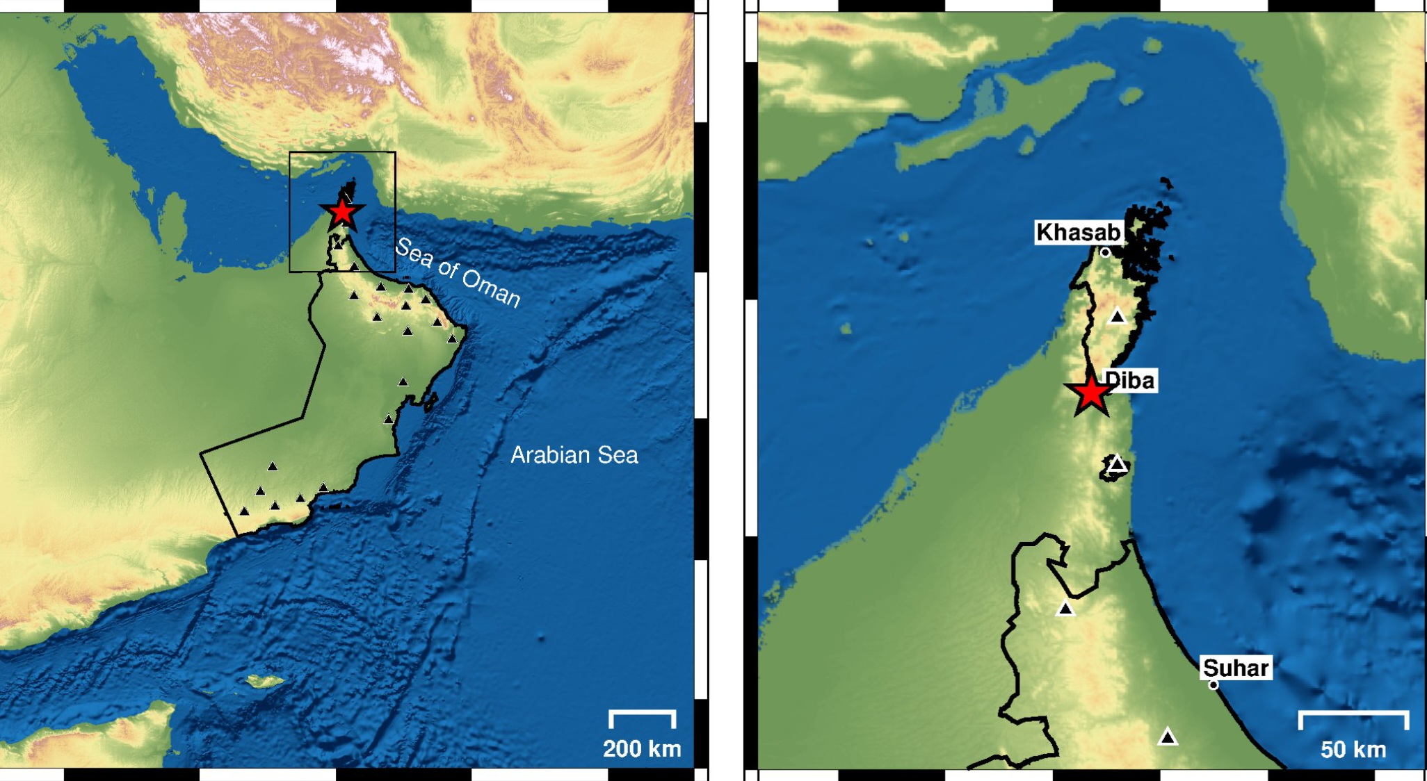 وأوضح المركز أن موقع الهزة يبعد حوالي 8 كيلومترات جنوب غرب مدينة دبا، بعمق 12 كيلومترًا.