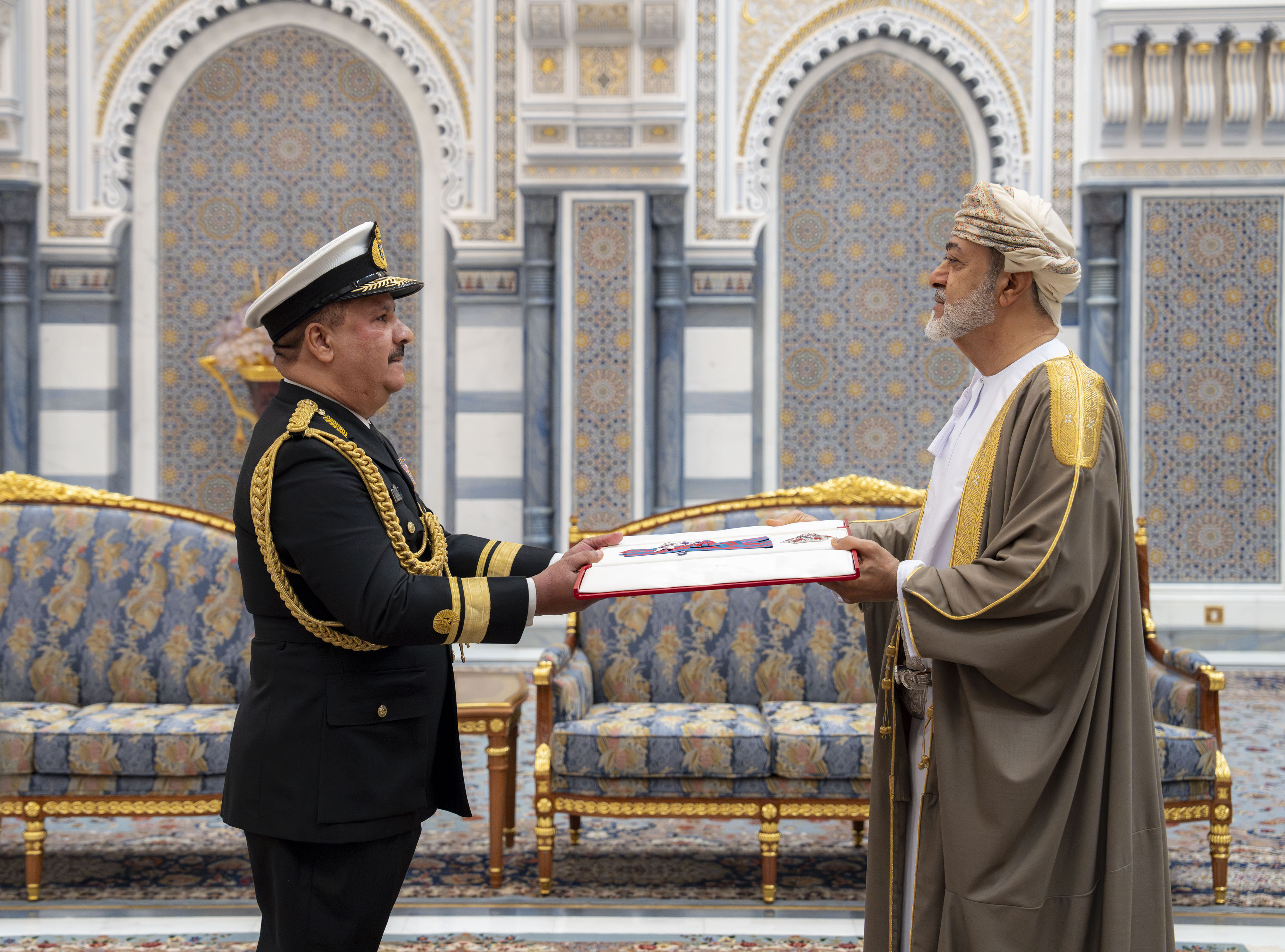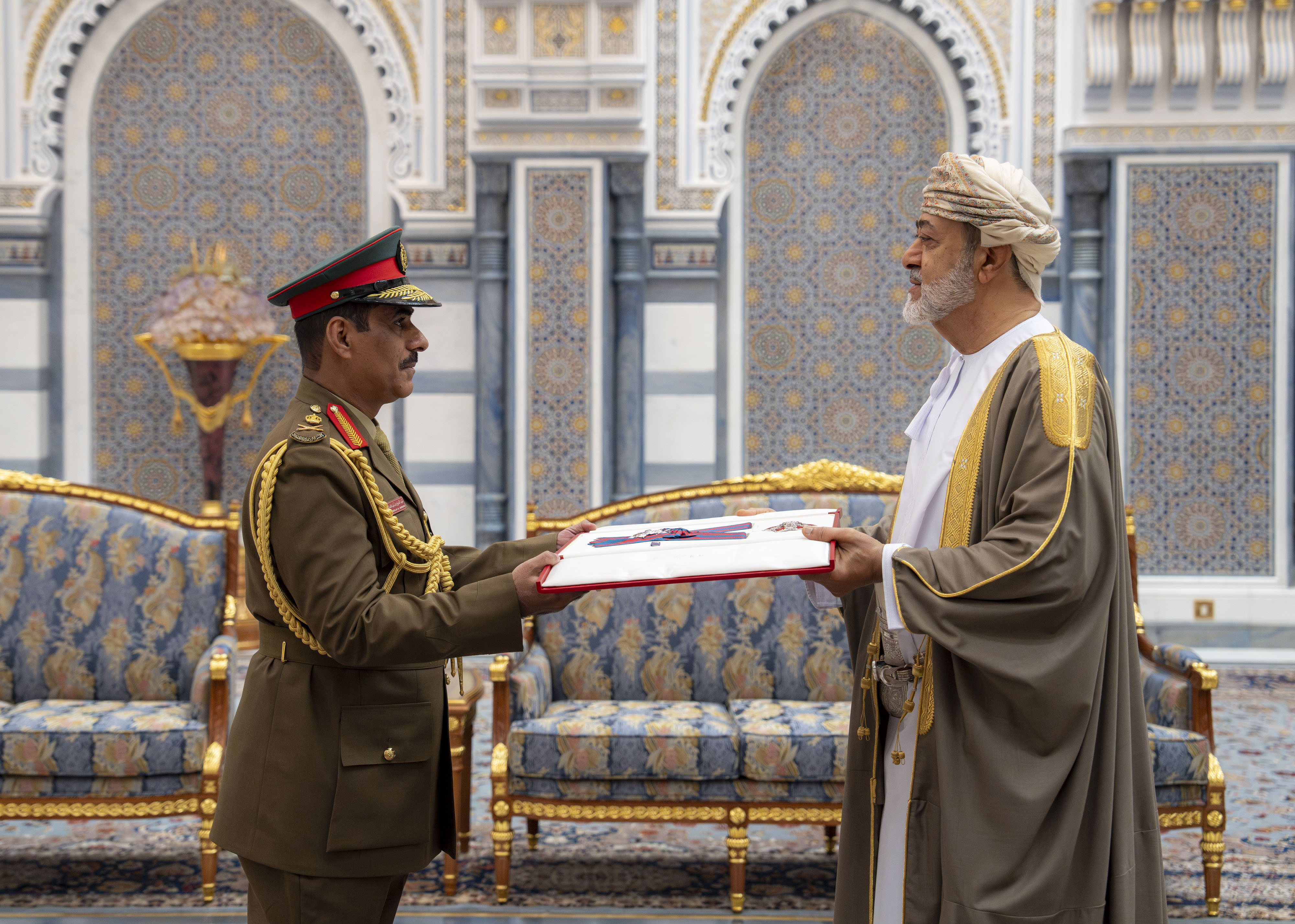جلالةُ السُّلطان المعظّم /حفظهُ اللهُ ورعاهُ/ يتفضّلُ فيمنحُ أوسمةً سُلطانيّةً بقصر البركة العامر لعددٍ من أصحاب السُّموّ والمعالي والسّعادةِ وقادة قوّات السُّلطان المسلّحة وشُرطة عُمان السُّلطانية وكبار الضّباط من الأجهزة العسكريّة والأمنيّة؛ تقديرًا من لدن عاهل البلاد المُفدّى لجهودهم المُخلصة في أداء واجبهم العملي، وتزامنًا مع احتفالات البلاد باليوم الوطنيّ المجيد.
