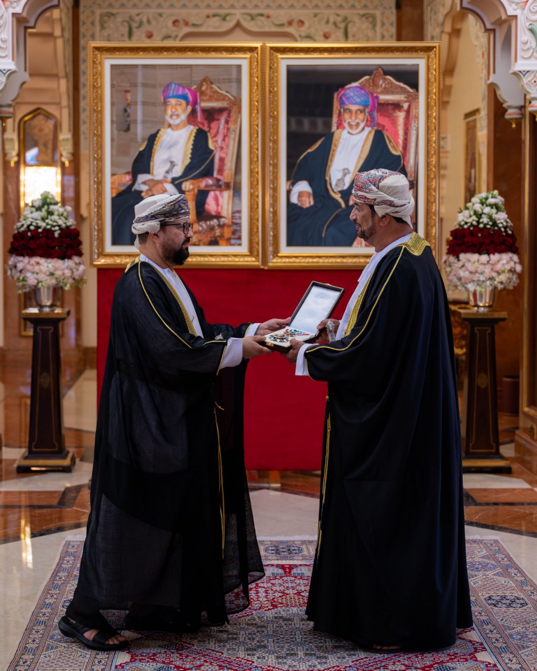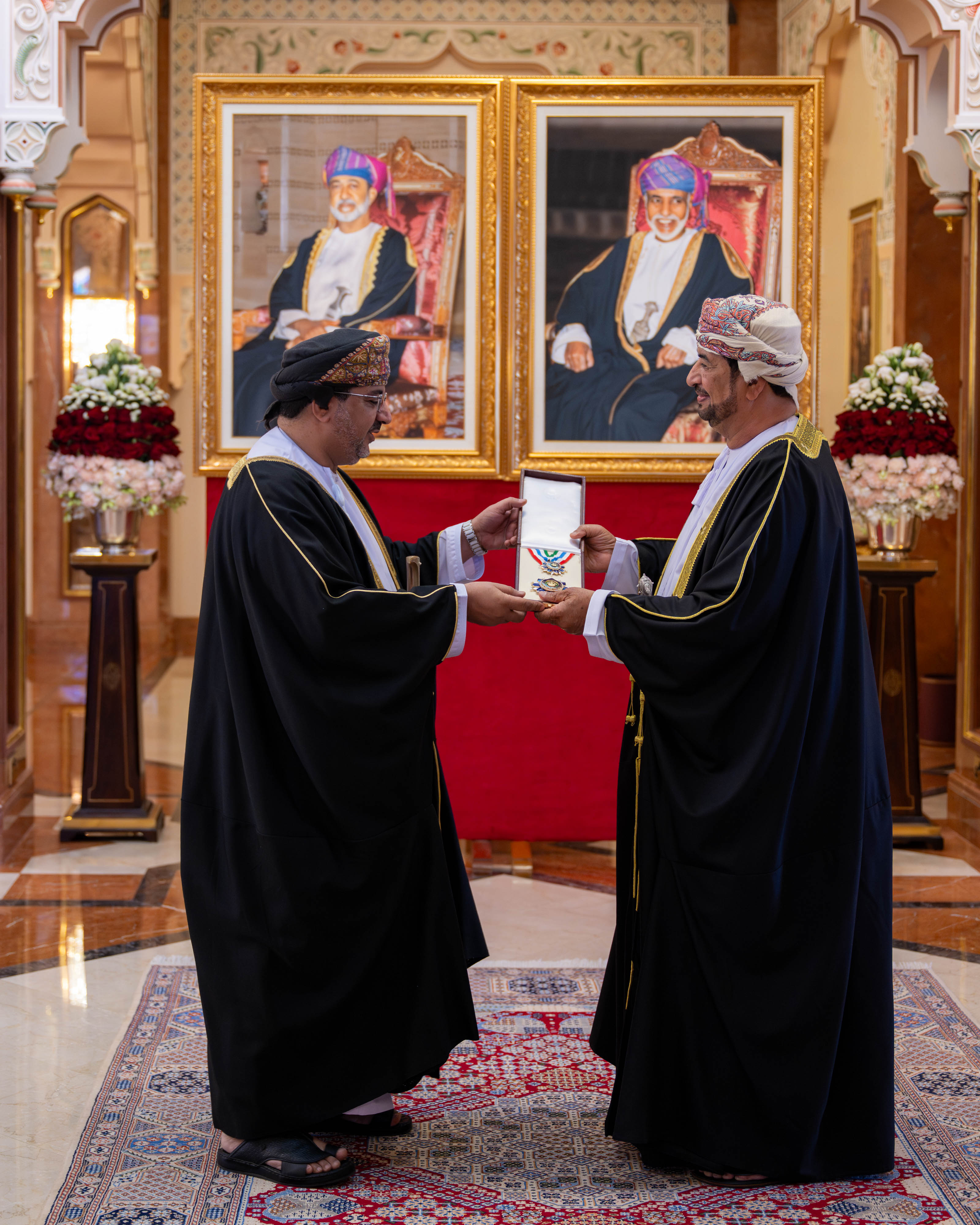قام بتسليم الأوسمة معالي السّيد خالد بن هلال البوسعيدي وزيرُ ديوان البلاط السُّلطاني صباح اليوم بمكتب معاليه.