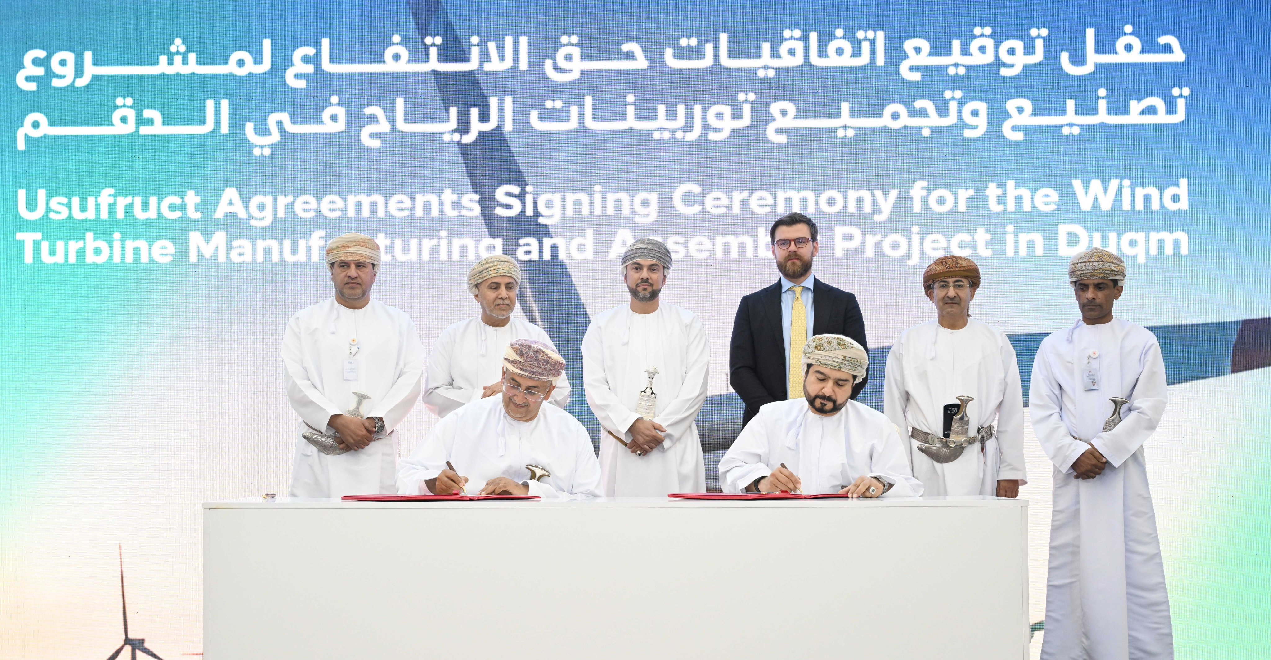 وقعت الهيئة العامة للمناطق الاقتصادية الخاصة والمناطق الحرة، وشركة موارد توربين، 3 اتفاقيات حق انتفاع لإنشاء مصنع لتصنيع توربينات الرياح بالمنطقة الاقتصادية الخاصة بالدقم، وتثبيت 6 توربينات لإنتاج الطاقة النظيفة لتغذية المصنع.