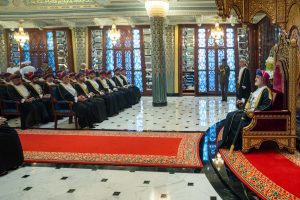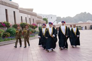 ولدى وصول جلالتِه /حفظهُ اللهُ/ إلى ساحة قصر العلم العامر اعتلى المنصّةَ، حيث عُزف السّلام السُّلطاني العُماني. عقب ذلك استقبل جلالتُه المُهنّئين بهذه المناسبة الطيّبة، وقد بادلهم جلالتُه التّهاني والتبريكات، مُعبّرًا عن شكره وتقديره لما أبدوه من مشاعر صادقةٍ ودعوات طيّبة، داعيًا اللهَ عزّ وجلّ أن يتقبّل من الجميع الطّاعات وصالحات الأعمال، وأن تكون أيام هذا العيد مُفعمة بالمسرّات والبركات على كافة المُواطنين والمُقيمين على أرض بلادنا العزيزة، وعلى الأمّتين العربيّة والإسلاميّة، وأن يُعيدها علينا جميعًا بالخير والعزّ والسُّؤدد.
