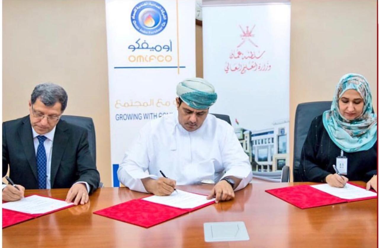 وقعت وزارة التعليم العالي بالتعاون مع الشركة العمانية الهندية للسماد (أوميفكو) اتفاقية تمويل عدد من المنح الدراسية في تخصصات بكالوريوس الهندسة بجامعة الشرقية لخريجي الدبلوم العام من أبناء أسر الضمان الإجتماعي والدخل المحدود بـمحافظة جنوب الشرقية .