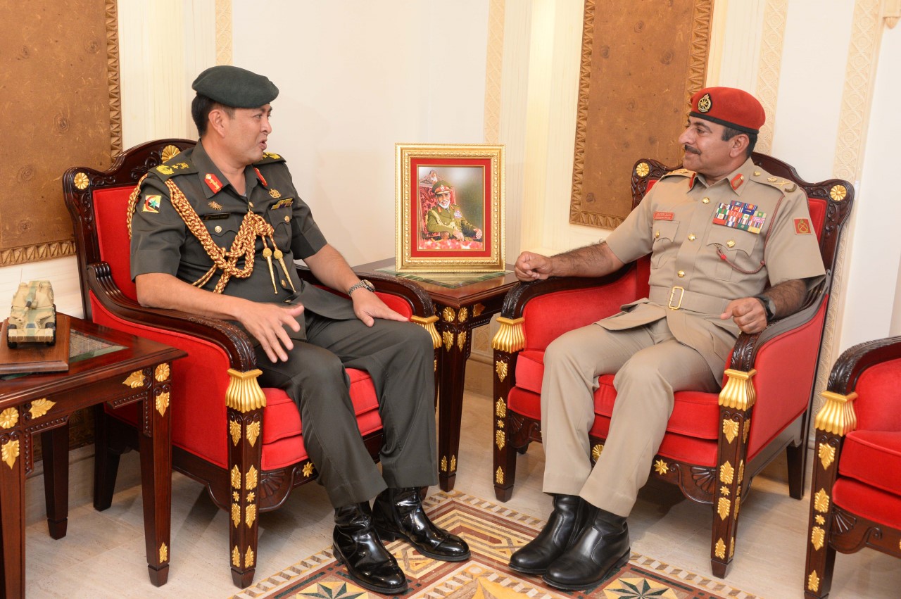 العمانية: استقبل اللواء الركن مطر بن سالم البلوشي قائد الجيش السلطاني العماني بمكتبه بمعسكر المرتفعة صباح اليوم العميد أوانغ خيرو حمد بن أوانغ حجي لامبوه قائد القوات البرية بسلطنة بروناي دار السلام والوفد المرافق له الذي يزور السلطنة حاليا.