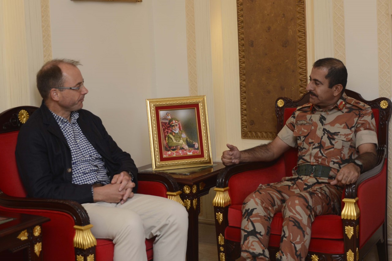 العمانية: استقبل اللواء الركن مطر بن سالم البلوشي قائد الجيش السلطاني العماني بمكتبه بمعسكر المرتفعة اليوم اللواء ستيورات سكيتس قائد قيادة القوات المشتركة الثابتة بالمملكة المتحدة والوفد المرافق له الذي يزور السلطنة حاليا.