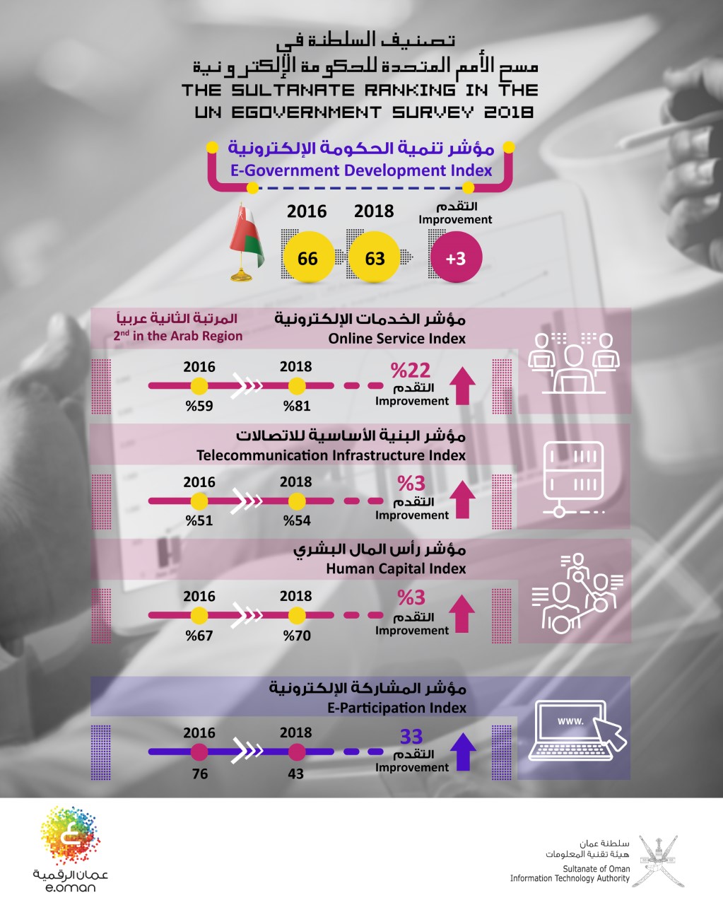 صنفت الامم المتحدة السلطنة بين أعلى دول العالم التزاما بالأمن السيبراني وفقا لتقرير تنمية الحكومات الإلكترونية الصادر عن لجنة الأمم المتحدة للشؤون الاقتصادية والاجتماعية لعام 2018.