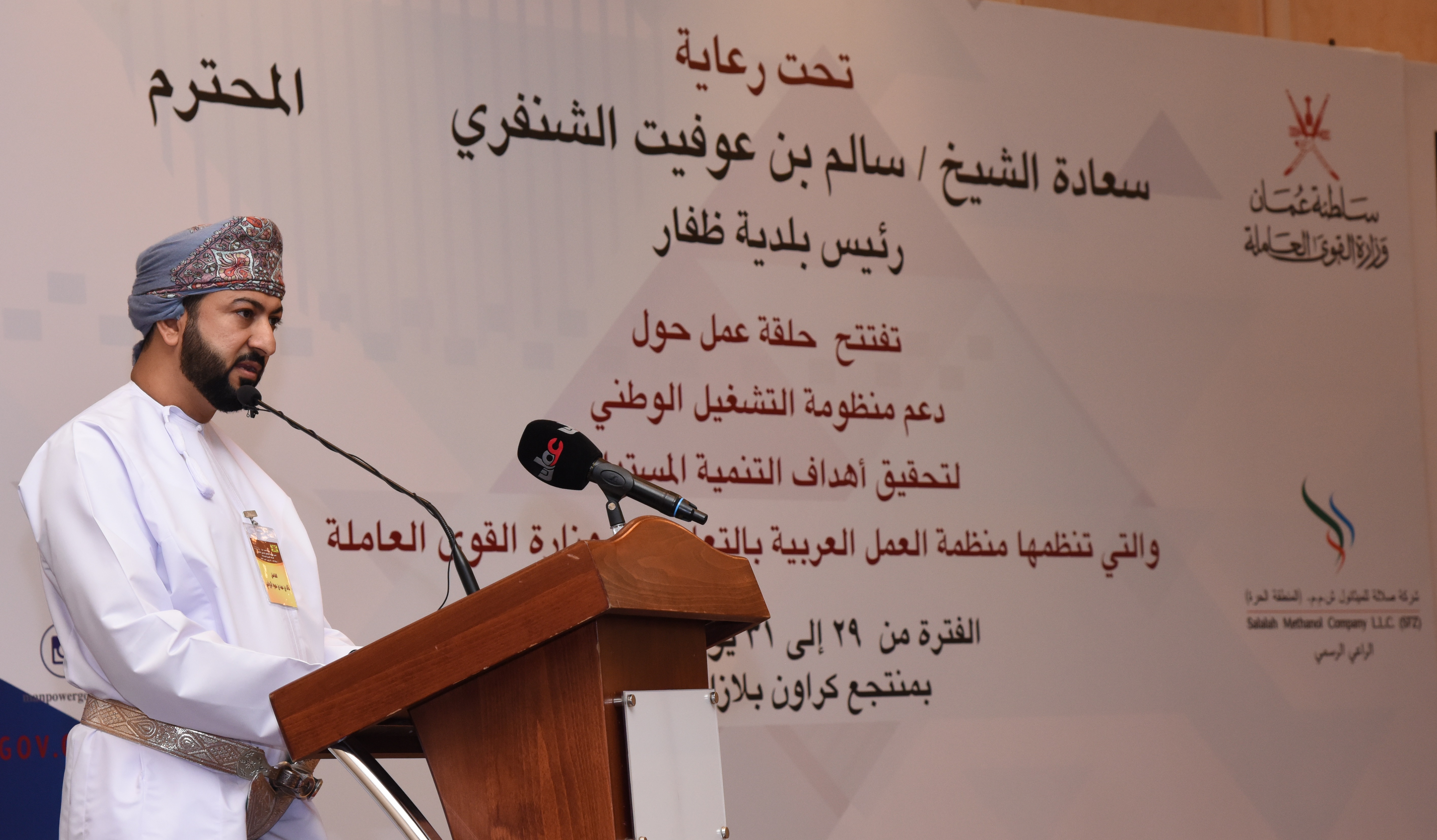 افتتحت اليوم بفندق كراون بلازا صلالة حلقة عمل حول / دعم منظومة التشغيل الوطني لتحقيق أهداف التنمية المستدامة/ التي تنظمها وزارة القوى العاملة بالتعاون مع منظمة العمل العربية وتستمر ثلاثة أيام.