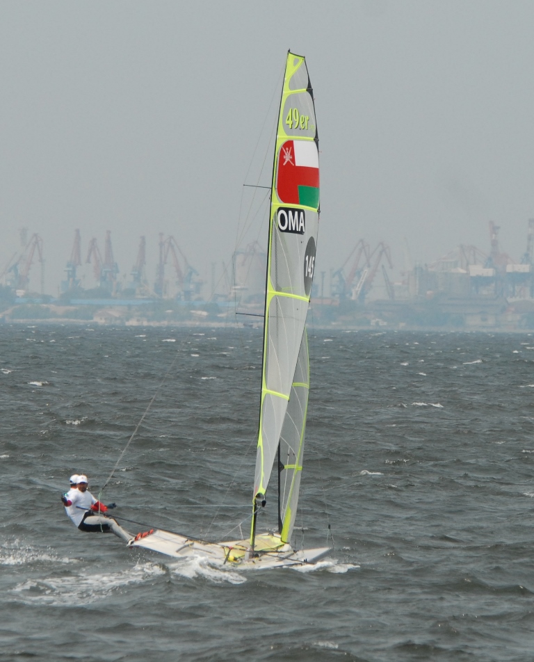 وجاء بحارة سباق 49 في المركز الخامس بعد خمسة سباقات خاضها البحارة في اليوم الثاني من الدورة من أصل مشاركة تسعة بحارة وبفارق تسع نقاط عن اندونسيا المتصدرة للترتيب العام ثم اليابان وتايلاند وكوريا على التوالي.