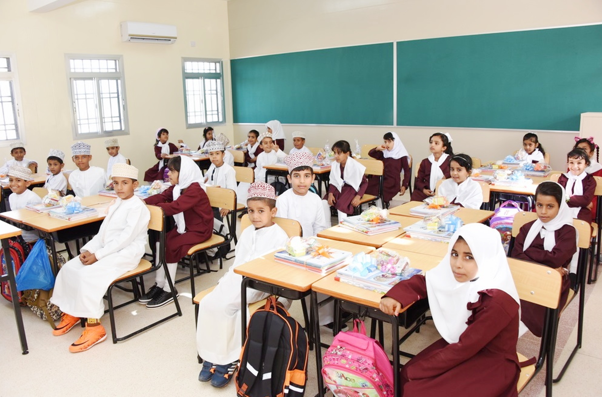 بعدها تواصلت فعاليات اليوم الدراسي الأول حيث توجه الطلبة والطالبات للفصول الدراسية وقامت اللجان المدرسية المشكلة على مستوى المدرسة بتوزيع الكتب الدراسية وحث الطلاب على الجد والمثابرة والمحافظة على الكتاب المدرسي إضافة إلى تعريف الطلاب المستجدين بمرافق المدرسة والمحافظة عليها وتوعيتهم بأهمية التغذية السليمة والتطرق إلى الكثير من الجوانب والمتعلقة بالحقيبة المدرسية والأسلوب الأفضل للمذاكرة والانضباط المدرسي وتوزيع الطلاب على الحافلات المدرسية كما صاحب برنامج استقبال الطلاب مجموعه من الفقرات الترفيهية للطلاب المستجدين.