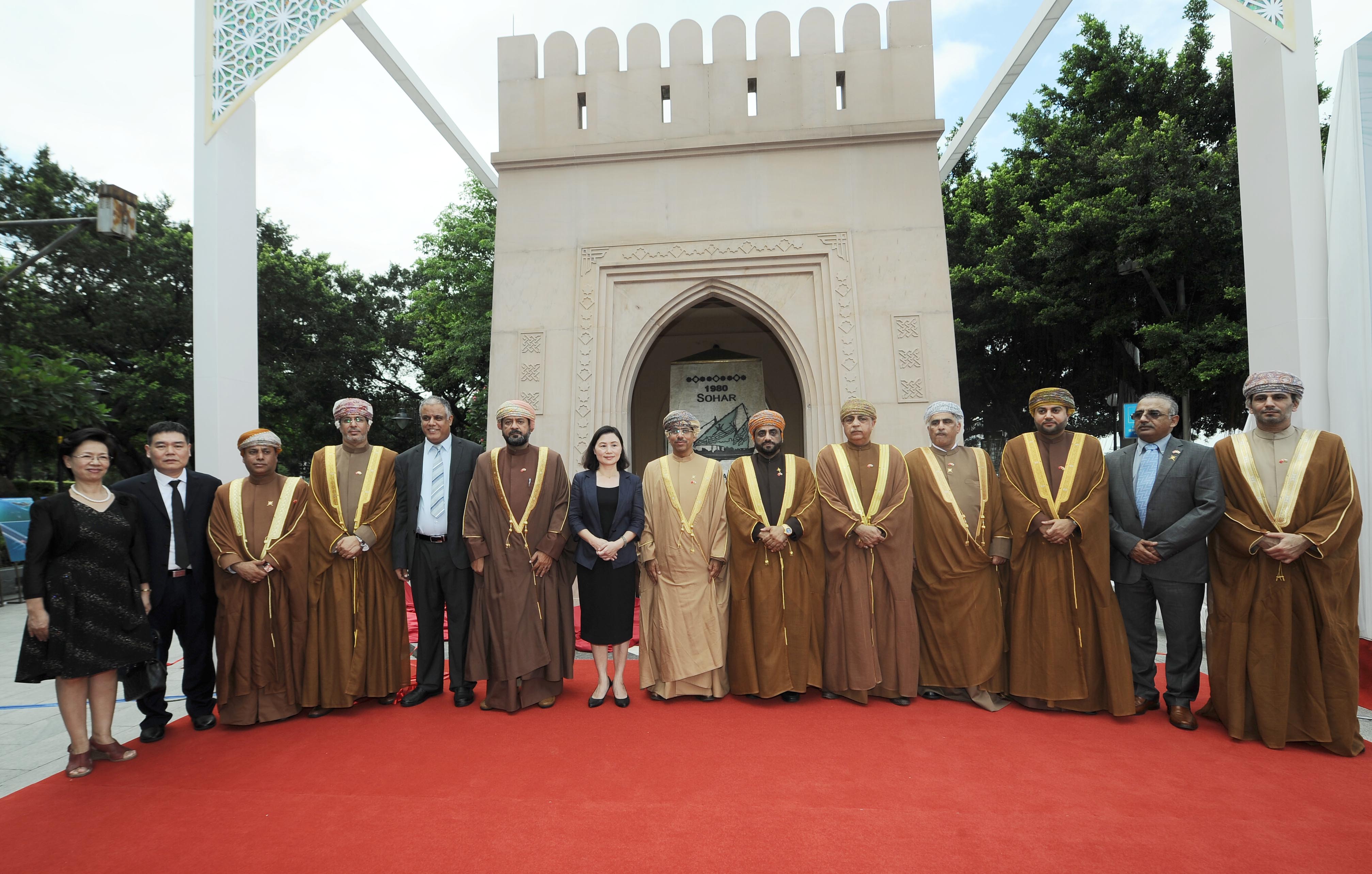 بعد ذلك أزاح معالي الدكتور عبدالمنعم بن منصور الحسني وزير الإعلام بحضور تشو يوي نائبة عمدة مدينة جوانزو وعدد من المسؤولين في الحكومة الصينية والوفد المرافق لمعاليه الستار عن النصب التذكاري لسفينة صحار التي أبحرت يوم 23 نوفمبر 1980م من شواطئ السلطنة لتقطع 6000 ميل بحري وتصل إلى مدينة كانتون (جوانزو) الصينية يوم 10 يوليو 1981م مرورا بموانئ الهند وسريلانكا وأندونيسيا وماليزيا.
