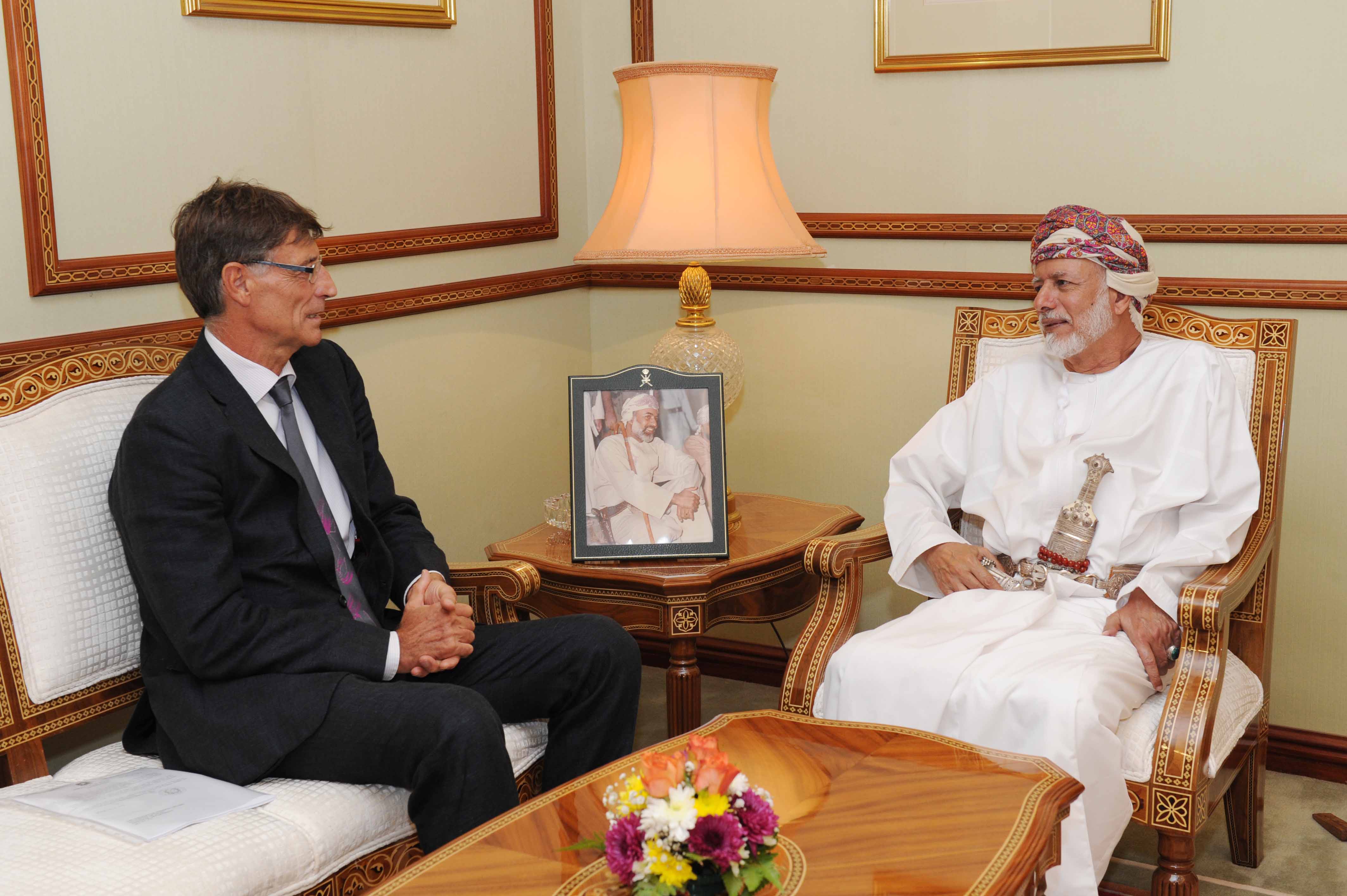 استقبل معالي يوسف بن علوي بن عبدالله الوزير المسؤول عن الشؤون الخارجية بمكتبه اليوم سعادة جورجيو فيزيتي سفير الجمهورية الإيطالية الصديقة، لتوديع معاليه بمناسبة انتهاء مهام عمله سفيرًا لبلاده لدى السلطنة.