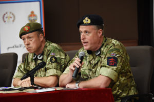 واستهل العميد الركن حسن بن علي المجيني رئيس التوجيه المعنوي المتحدث الرسمي للتمرين، المؤتمر الصحفي بالحديث عن التمرينين الوطني الشموخ / 2 والسيف السريع / 3 المشترك مع القوات الملكية البريطانية الصديقة، حيث أكد على أهمية التدريبات المشتركة لتبادل الخبرات مع القوات البريطانية التي تملك الخبرات العريقة والمتميزة لذا فإن التمرين يعد مكسبا تدريبيا آخر من خلال دمج القوتين في مهمة تدريبية مشتركة ميدانيا.