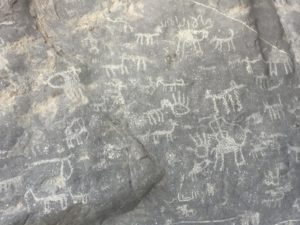 كما توضح النقوش المكتشفة أيضا صورًا للجمال (سفينة الصحراء) التي استخدمت قديمًا كوسيلة نقل سريعة لقطع المسافات الطويلة وكذلك لنقل البضائع الثقيلة كخام النحاس، والأدوات والأواني النحاسية من مستوطنات النحاس.