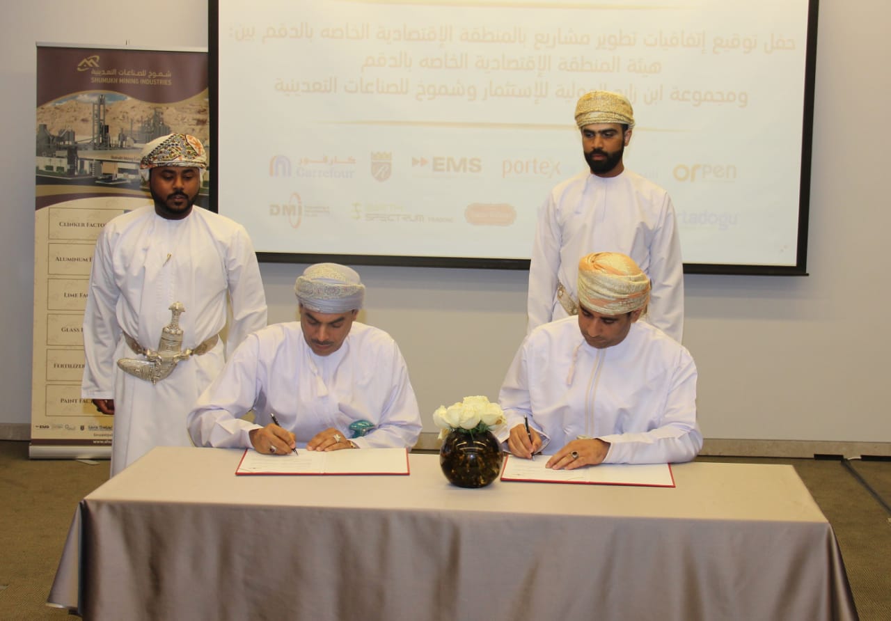 وقع المذكرتين نيابة عن شركة محاجر الدقم المهندس علي بن عبدالله الزدجالي مدير عام الشركة وعن الشركتين أحمد بن زايد المحرمي رئيس مجموعة ابن زايد للاستثمار ورئيس مجلس إدارة شركة شموخ للصناعات التعدينية.
