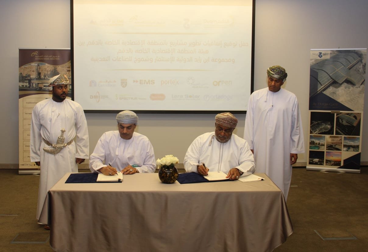 وقّع معالي يحيى بن سعيد الجابري رئيس مجلس إدارة هيئة المنطقة الاقتصادية الخاصة بالدقم اليوم اتفاقيتي انتفاع وتطوير لإنشاء مشروعين جديدين بالدقم ، الاتفاقية الأولى مع مجموعة ابن زايد الدولية للاستثمار باعتبارها شركة مطورة تعتزم إنشاء مجمع سياحي وتجاري تحت مسمى بوابة الدقم السياحية التجارية يتم تنفيذه على عدة مراحل.