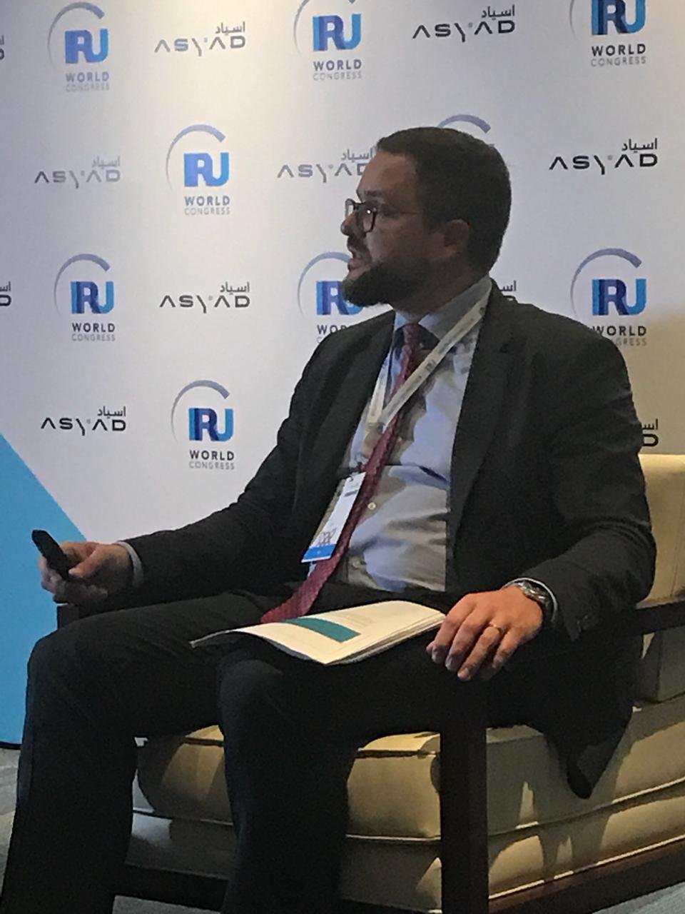 من جانبه أستعرض مويس بلانش تاريخ IRU منذ الحرب العالمية الثانية و مساعيهم لإعادة إعمار ما خلفته الحرب من الدمار و تاريخهم في التعاون المستمر بينهم وبين دول العالم و دول الخليج للنهوض بالقطاع اللوجستي .