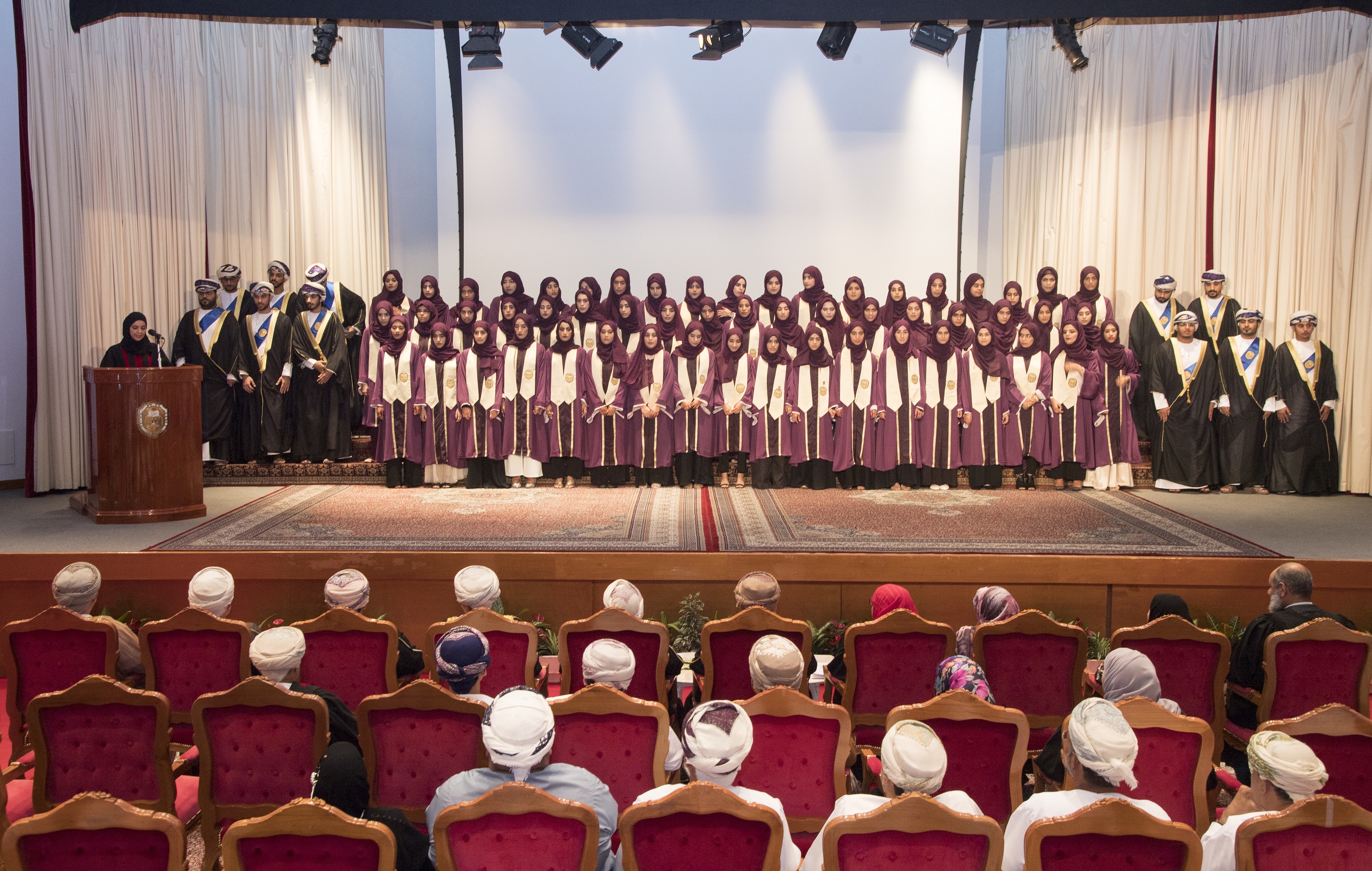 أدّى خريجو كليتي الطب والتمريض بجامعة السلطان قابوس اليوم القسم الطبي والتمريضي أمام معالي الدكتور أحمد بن محمد السعيدي وزير الصحة.