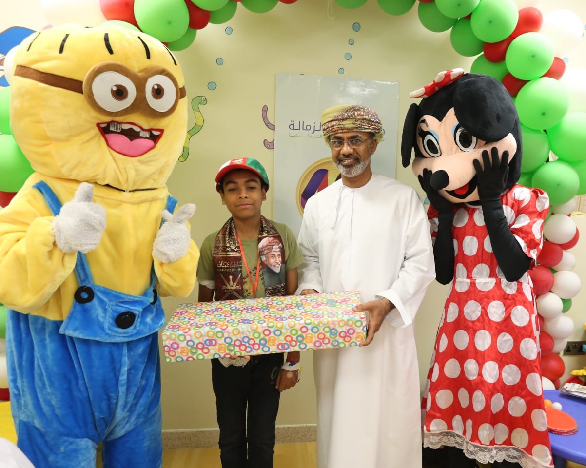 تمازجت أجواء نوفمبر واحتفالات السلطنة بالعيد الوطني مع أجواء المبادرات الانسانية والاجتماعية من خلال مبادرة صندوق الزمالة لموظفي وزارة الزراعة والثروة السمكية برسم البسمة على وجوه الأطفال في قسم الأورام السرطانية بالمستشفي السلطاني بمسقط خلال زيارة أعضاء الصندوق لهم صباح أمس الأثنين.