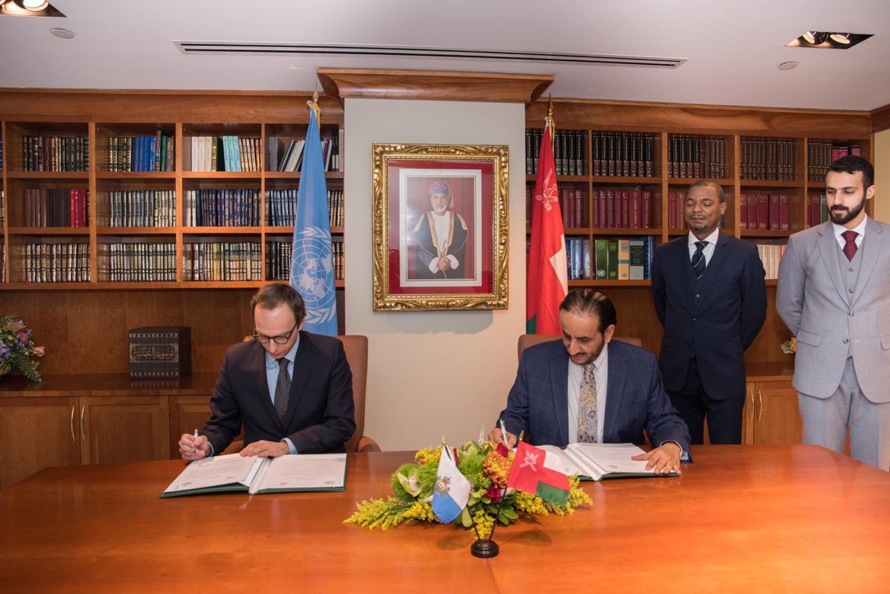 تم اليوم بمقر وفد السلطنة الدائم لدى الأمم المتحدة في نيويورك التوقيع على البيان المشترك الخاص بإقامة علاقات دبلوماسية بين حكومة السلطنة وجمهورية سان مارينو.