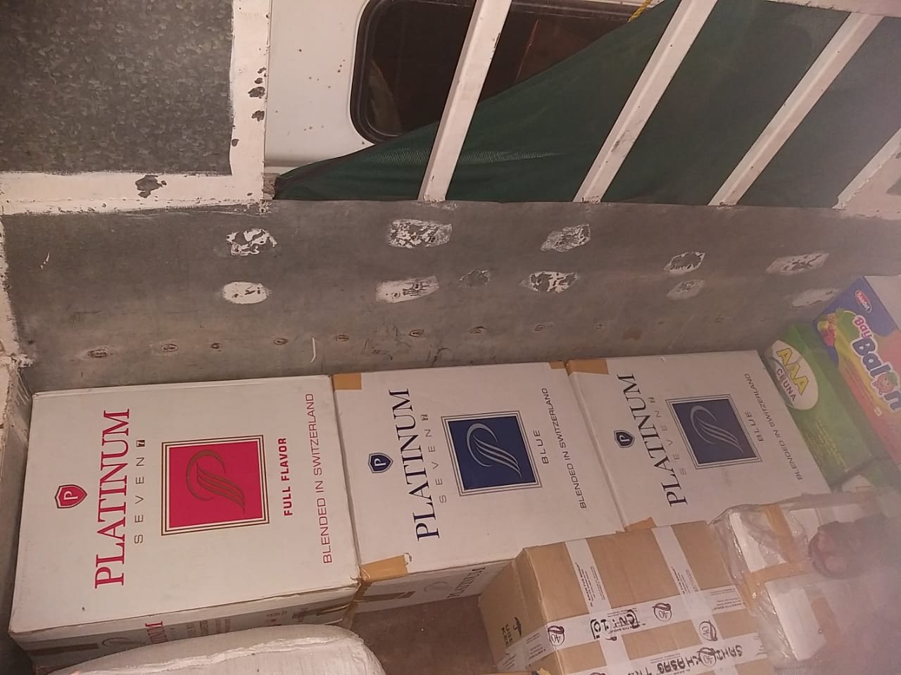 كما أحبطت جمارك منفذ البريمي عملية تهريب أكثر من 27000 كرز سجائر وكميات كبيرة من مشتقات التبغ الممنوعة.