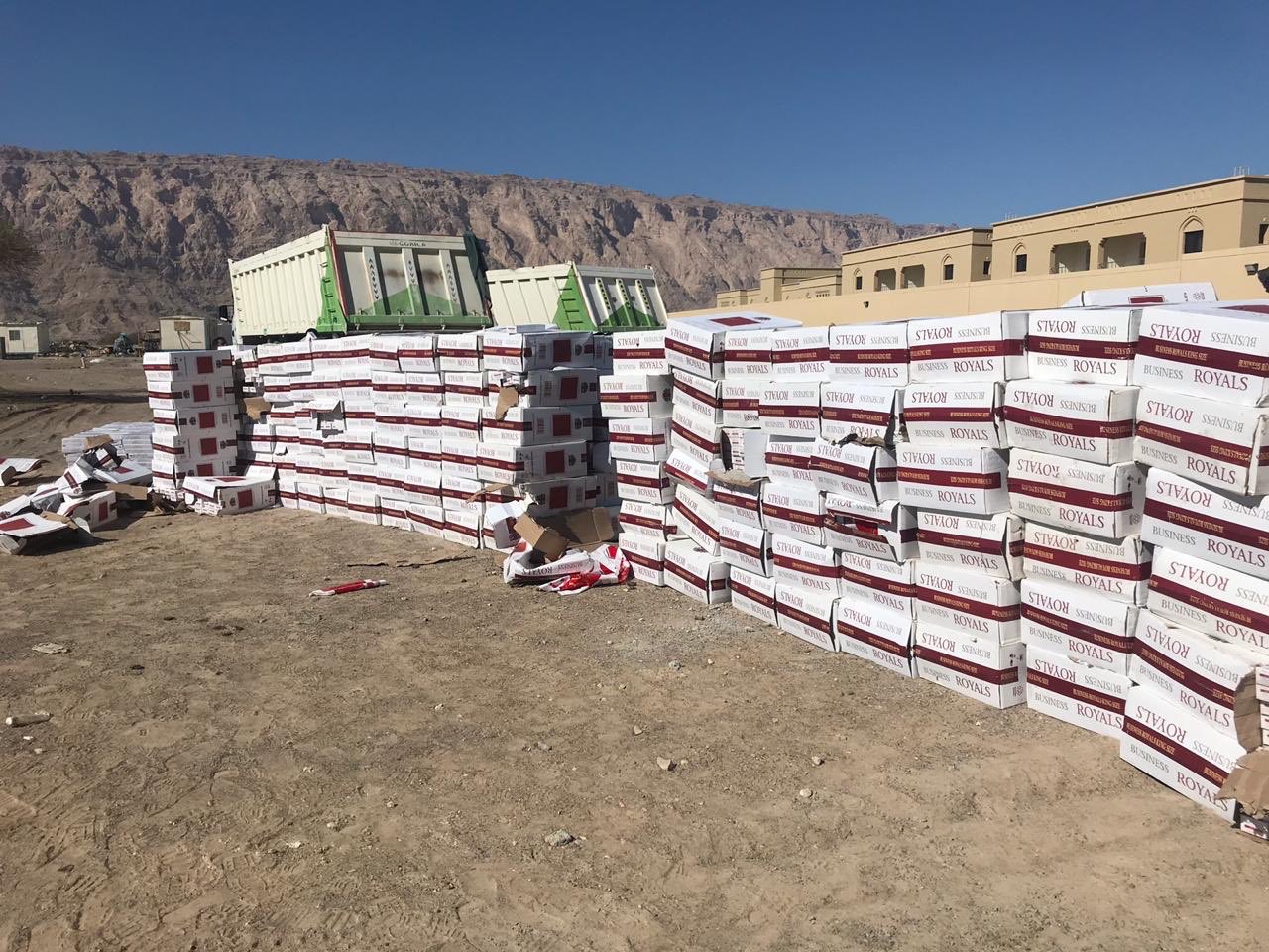 قالت شرطة عمان السلطانية أن مركز شرطة وادي صاع بقيادة شرطة محافظة البريمي قام بضبط عملية تهريب ٤٥ ألف علبة سجائر أثناء دخولها عبر المنفذ البري، وجاري اتخاذ الإجراءات القانونية حيال الواقعة.