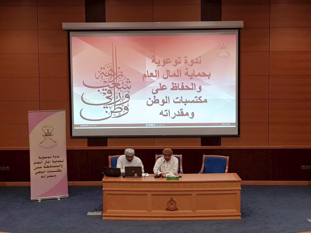 وقد حاضر في الندوة التي هدفت إلى تجسيد مبدأ الشراكة مع مؤسسات الدولة في الحفاظ على منجزات الوطن وصون مقدراته كل من المراقب يحيى بن عبدالله الكندي مدير الدائرة ، والعضو رقابي خالد بن علي الشيباني، حيث تناولا آلية العمل في الجهاز لتحقيق الأهداف والاختصاصات الموكلة إليه في إطار توليه مهمة الرقابة المالية والإدارية على الأموال المملوكة للدولة أو الخاضعة لإدارتها أو الإشراف عليها، فضلاً عن كافة التصرفات المالية والإدارية، بالإضافة إلى متابعة أداء الجهات المشمولة برقابته وفقاً للقوانين المنظمة لهذا الشأن ويأتي في مقدمتها قانون الرقابة المالية والإدارية للدولة وقانون حماية المال العام وتجنب تضارب المصالح الصادرين بالمرسومين السلطانيين رقمي 111 و 112 / 2011 على التوالي، إلى جانب تولي الجهاز متابعة وتنفيـــذ اتفاقية الأمـــم المتـحـــدة لمكـافحة الفســاد، و مهمة الهيئة المقترح انشاؤها لمكافحة ومنع الفساد، كما تم استعراض نموذجي إقرار الذمة المالية والإفصاح السنوي للمسؤول الحكومي.