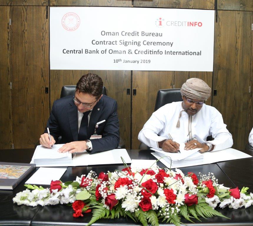 وقع البنك المركزي العماني اليوم بالمقر الرئيسي للبنك عقد مشروع مركز عمان للمعلومات الائتمانية والمالية مع شركة ” كريدت إنفو العالمية”، وقد وقع العقد نيابة عن البنك المركزي العماني سعادة طاهر بن سالم بن عبدالله العمري الرئيس التنفيذي للبنك المركزي العماني، وعن الشركة ستيفانو ستوباني الرئيس التنفيذي وذلك بحضور عدد من المسؤولين من البنك والشركة.