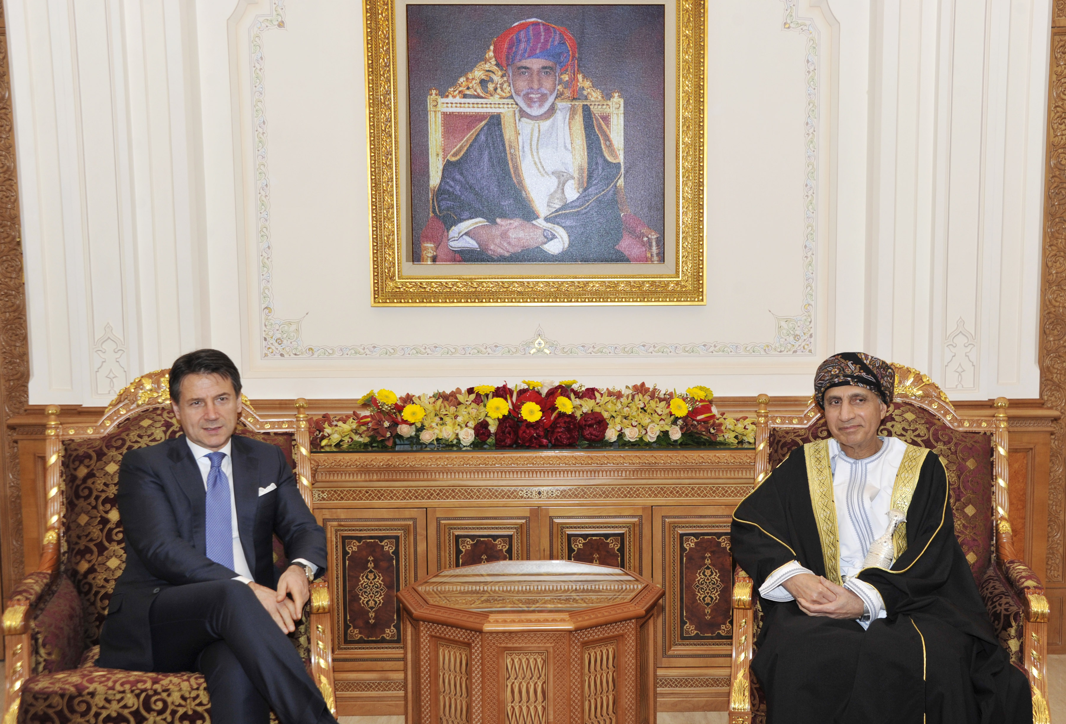 نيابة عن حضرة صاحب الجلالة السلطان قابوس بن سعيد المعظم – حفظه الله ورعاه – استقبل صاحب السمو السيد فهد بن محمود آل سعيد نائب رئيس الوزراء لشؤون مجلس الوزراء اليوم بمقر مجلس الوزراء دولة البروفيسور جوزيبي كونتي رئيس وزراء جمهورية إيطاليا ، حيث نقل دولته في بداية اللقاء تحيات فخامة الرئيس سيرجيو ماتاريلا رئيس الجمهورية الإيطالية والحكومة لجلالة السلطان المعظم وتمنياتهم الطيبة لجلالته والحكومة بدوام التوفيق وللشعب العُماني بالمزيد من التقدم والنماء.