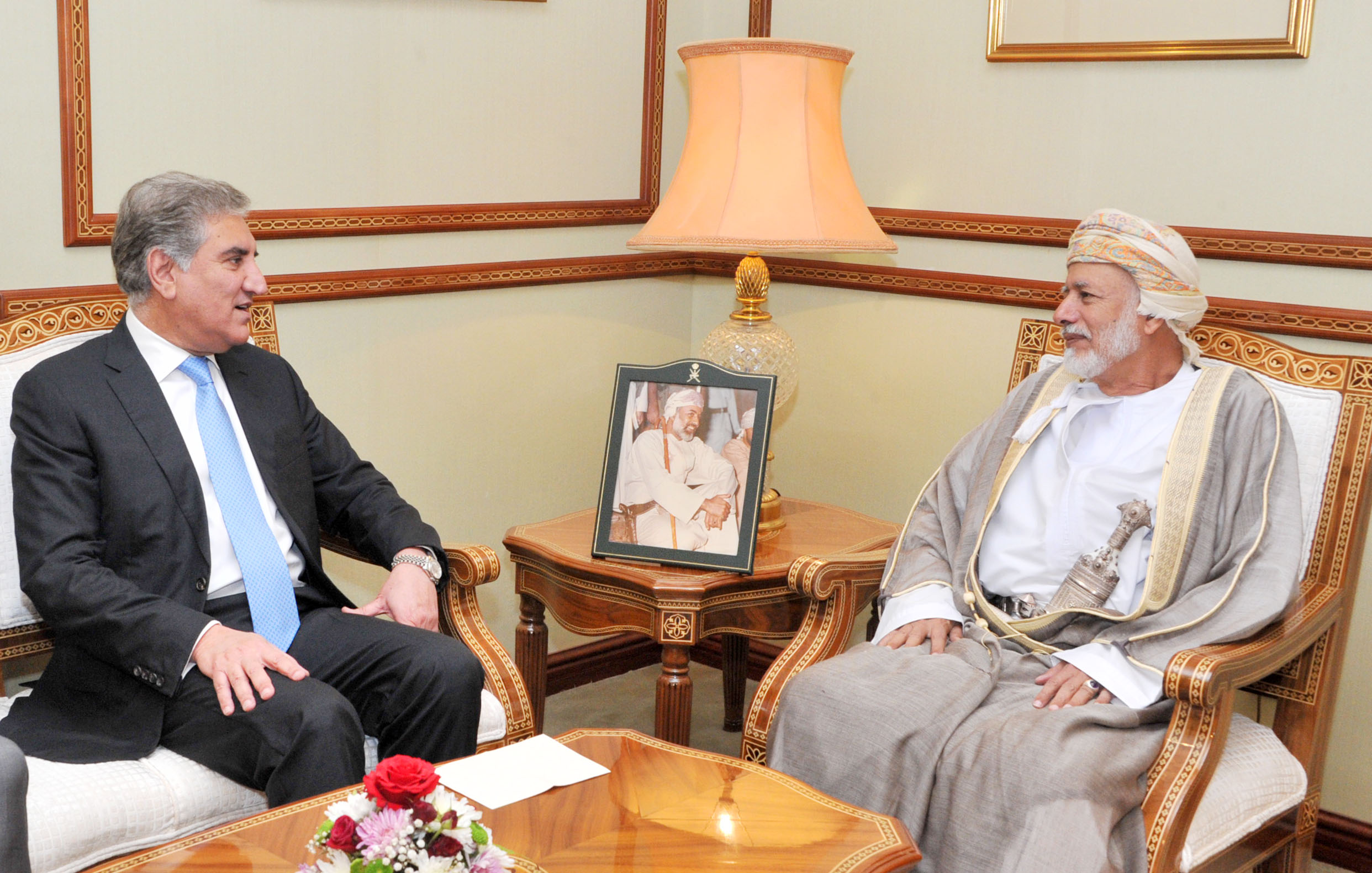 استقبل معالي يوسف بن علوي بن عبدالله الوزير المسؤول عن الشؤون الخارجية بمكتبه اليوم معالي مخدوم شاه محمود قريشي وزير الشؤون الخارجية بجمهورية باكستان الإسلامية الصديقة.