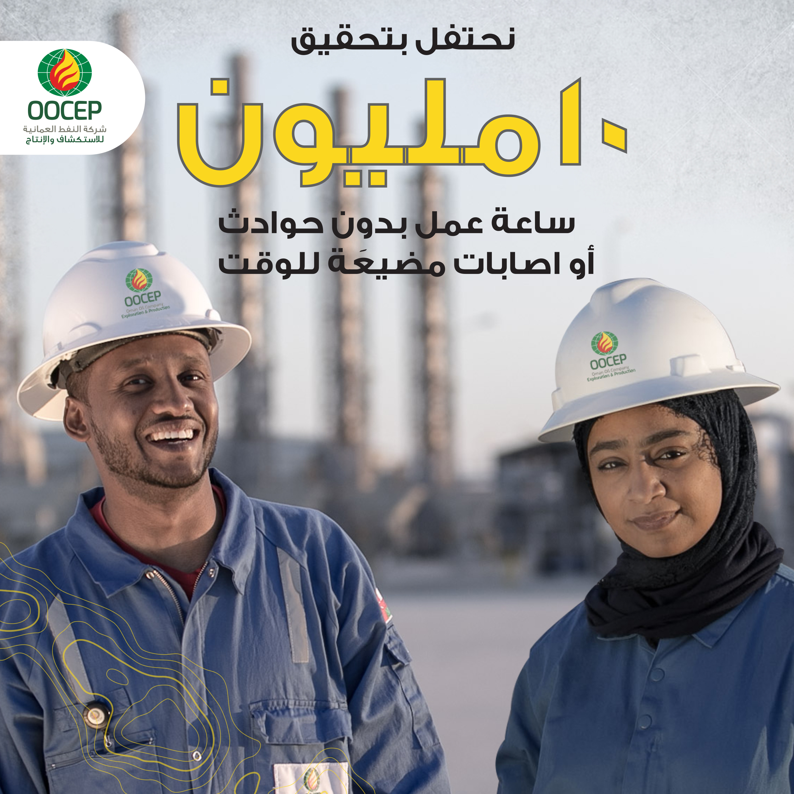 أعلنت شركة النفط العمانية للاستكشاف والإنتاج عن تحقيق إنجاز تمثل في استكمال 10 ملايين ساعة عمل بدون أي حادث مهدر للوقت في جميع قطاعات التشغيل ممايؤكد التزام الشركة الكبير بثقافة السلامة حيث يلتزم بها جميع العاملين بالشركة ومقاولوها في سبيل العمل نحو تحقيق الامتياز في التشغيل.