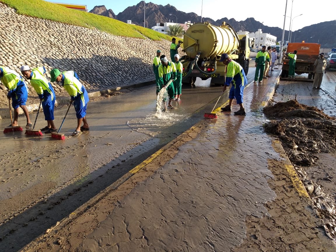تواصل بلدية مسقط بمطرح الكبرى جهودها في تنظيف وإزالة مخلفات الأمطار من شوارع الحمرية و روي و الوادي_الكبير والطريق ا