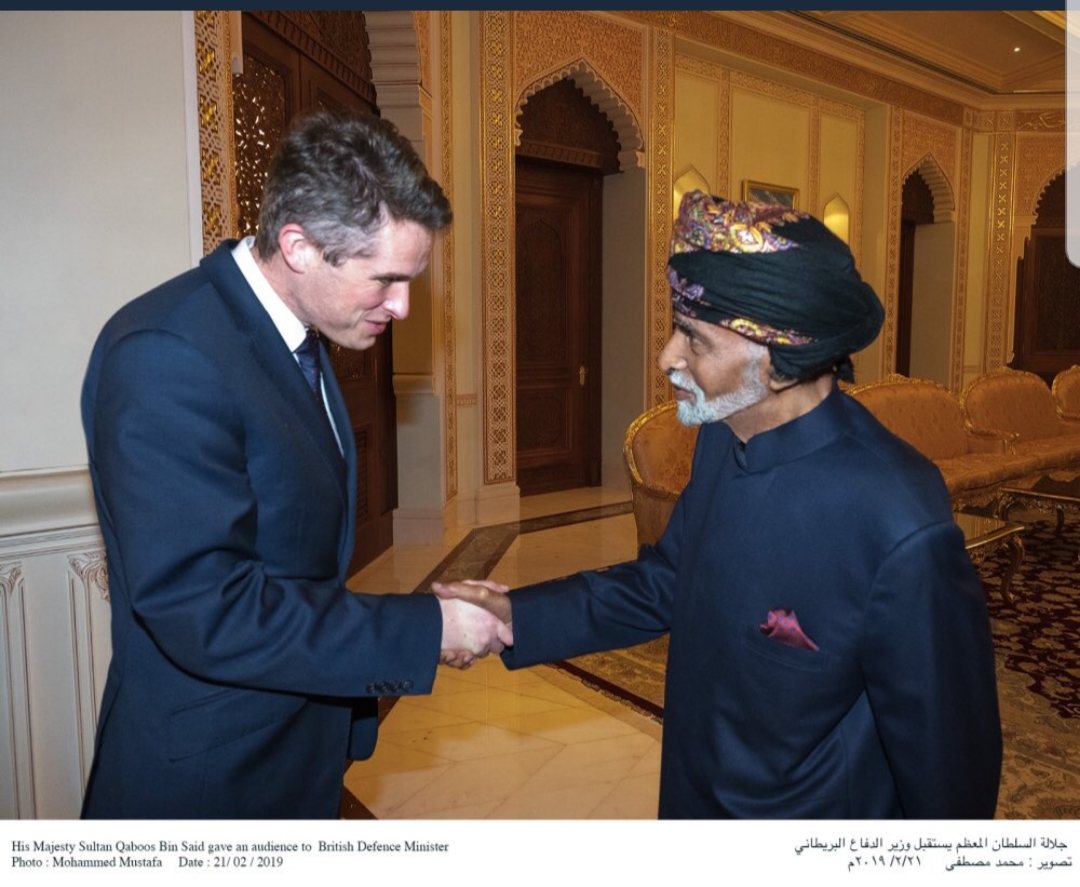 استقبل حضرة صاحب الجلالة السلطان قابوس بن سعيد المعظم/ حفظه الله ورعاه/ ببيت البركة مساء اليوم معالي جافين ويليامسون وزير الدفاع البريطاني.