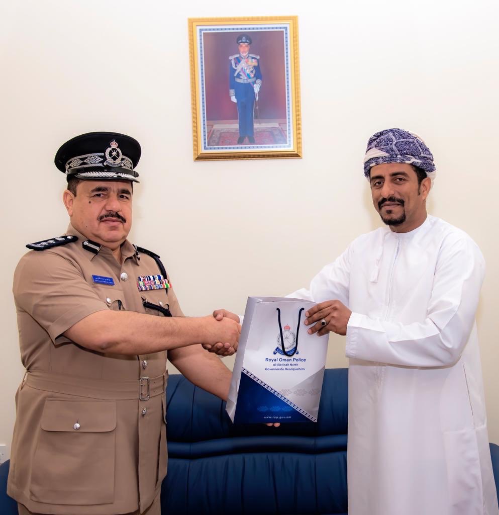 قالت شرطة عمان السلطانية أن العقيد /عبدالله بن حمد الفارسي مساعد قائد شرطة محافظة شمال الباطنة كرم بمكتبه المواطن/سعيد بن عبدالله بن سعيد الشيدي تقديراً لما قدمه المواطن من خدمات وتعاون مع رجال الشرطة عملاً بمبدأ كلنا شرطة .