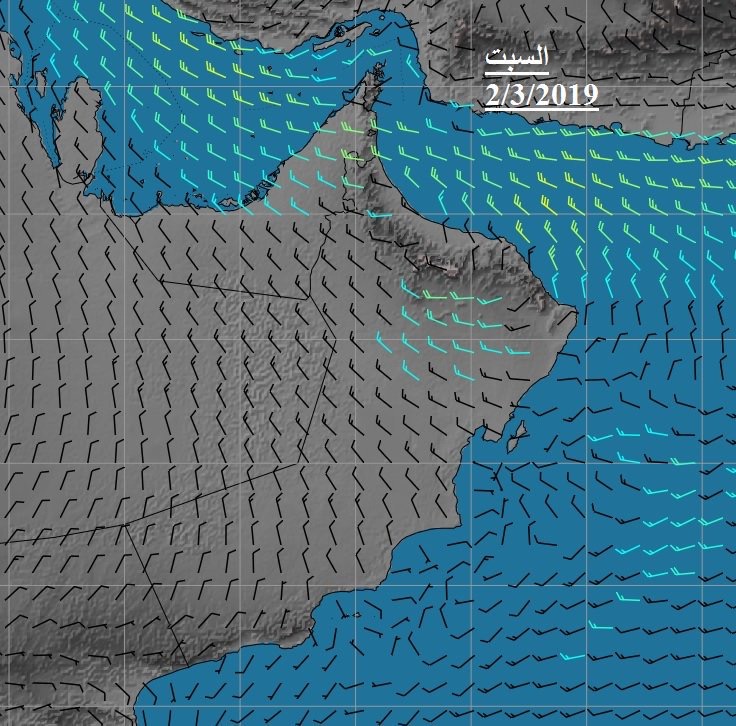 قالت الهيئة العامة للطيران المدني أن نشاط الرياح الشمالية الغربية (25 -30 عقدة) يستمر خلال الساعات القادمة مع استمرار تصاعد الغبار والأتربة و تطاير الأجسام الغير ثابتة وانخفاض مستوى الرؤية الأفقية أحياناً على معظم محافظات السلطنة وعليه يرجى أخذ الحيطة والحذر.