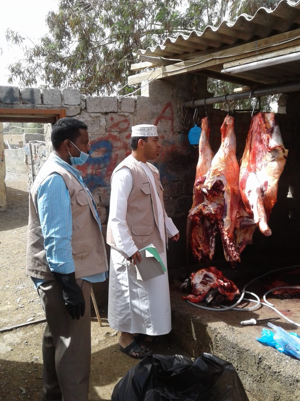 ضبطت بلدية المصنعة عمالة وافدة تقوم بذبح اللحوم في بيئة غير صحية وتفتقر للإشتراطات الصحية ، حيث يتم بيعها وتوزيعها ، وتم إتخاذ الإجراءات القانونية حيالهم.