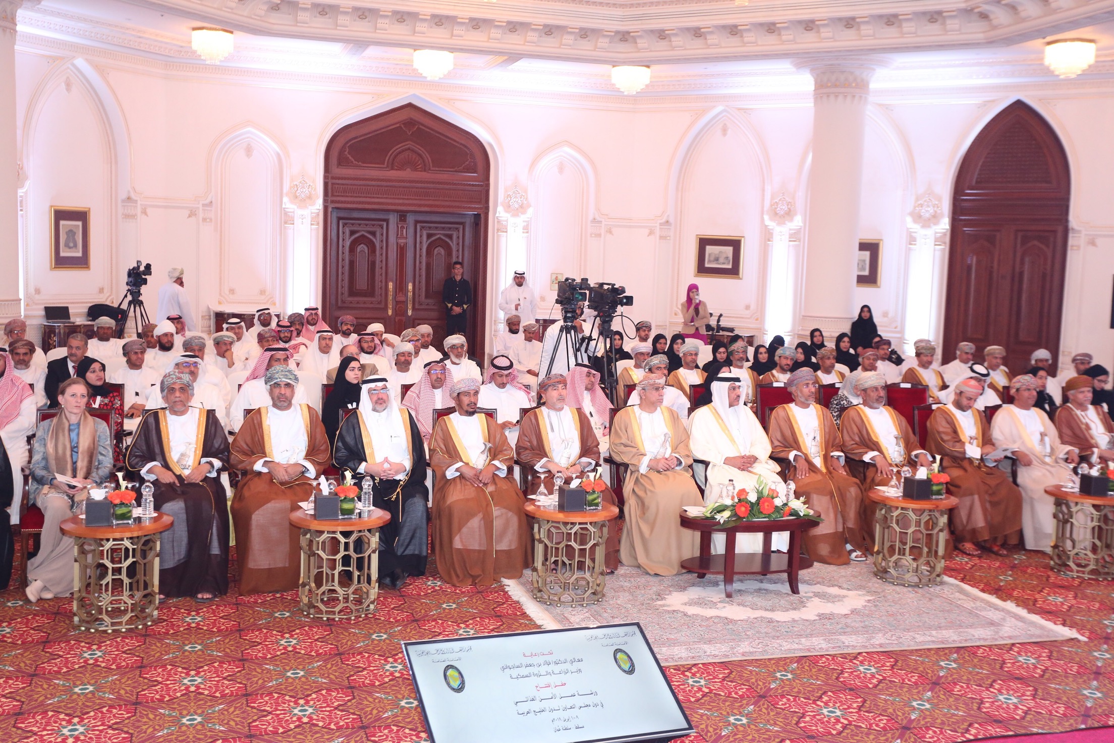 وقد رعى الافتتاح معالي الدكتور فؤاد بن جعفر الساجواني وزير الزراعة والثروة السمكية بحضور سعادة الدكتور عادل الزياني، رئيس قطاع الإنسان والبيئة بالامانة العامة لمجلس التعاون لدول الخليج العربية وعدد من المكرمين أعضاء مجلس الدولة وأصحاب السعادة أعضاء مجلس الشورى وأصحاب السعادة الوكلاء ورؤساء الوفود من الدول الأعضاء ووالمعنيين والمهتمين في مجال الامن الغذائي .