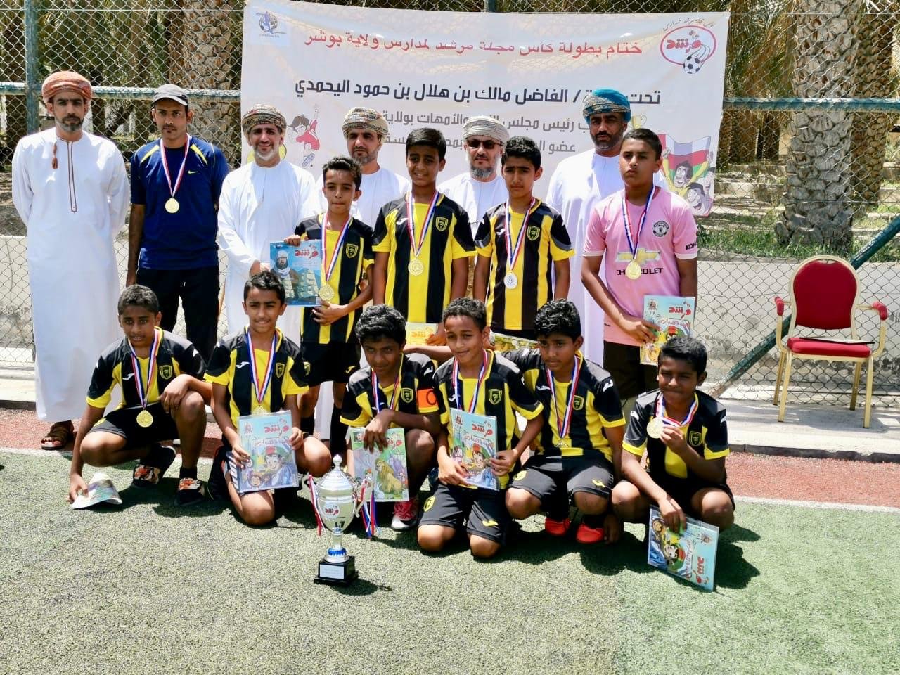 وحضر المبارة الختامية الشيخ الدكتور خالد بن عبدالله العبري نائب والي بوشر ومدراء المدارس المشاركة في البطولة .