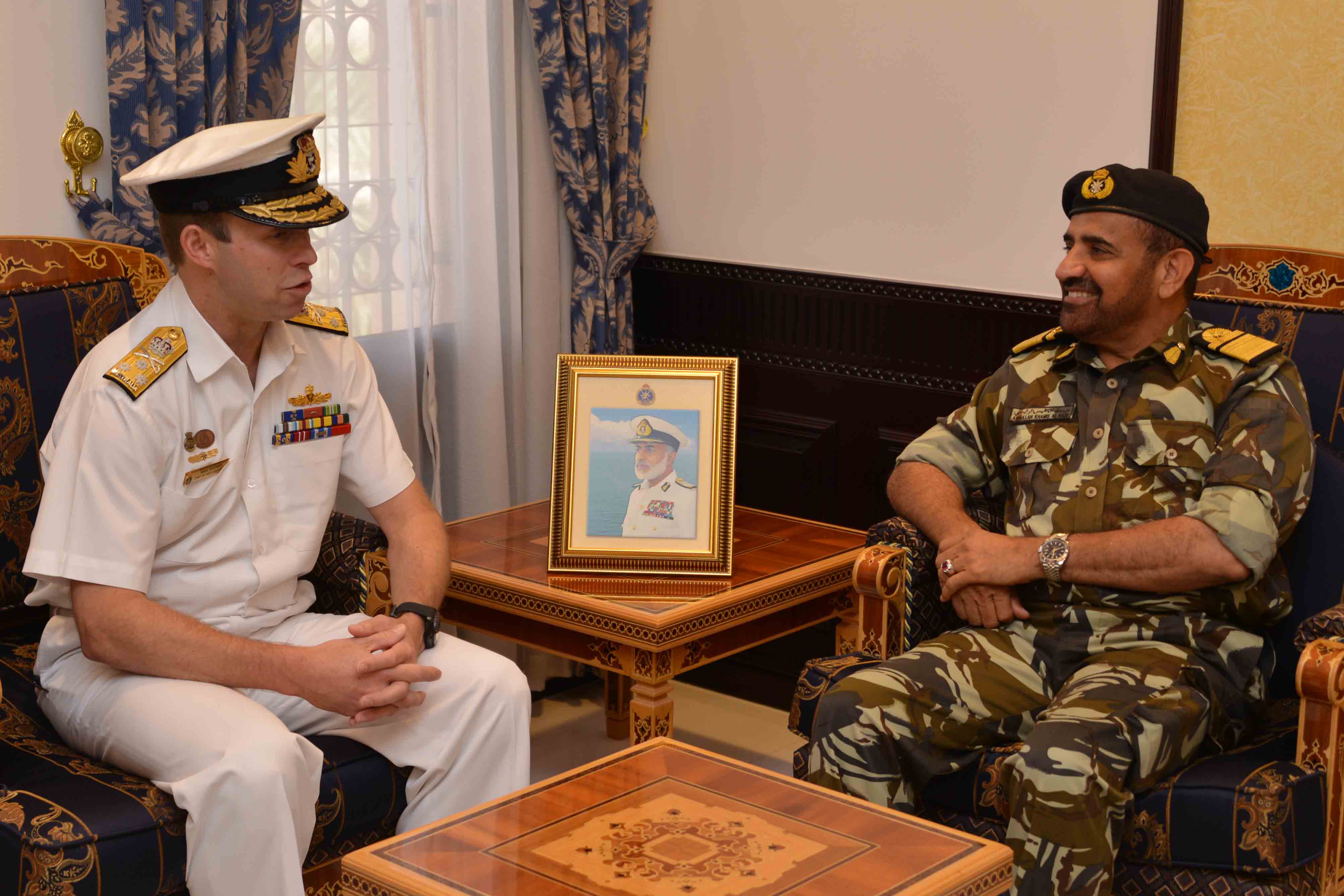 استقبل اللواء الركن بحري عبدالله بن خميس الرئيسي قائد البحرية السلطانية العمانية بمكتبه بمعسكر المرتفعة اليوم الفريق بحري مايكل نونان قائد البحرية الأسترالية والوفد المرافق له.