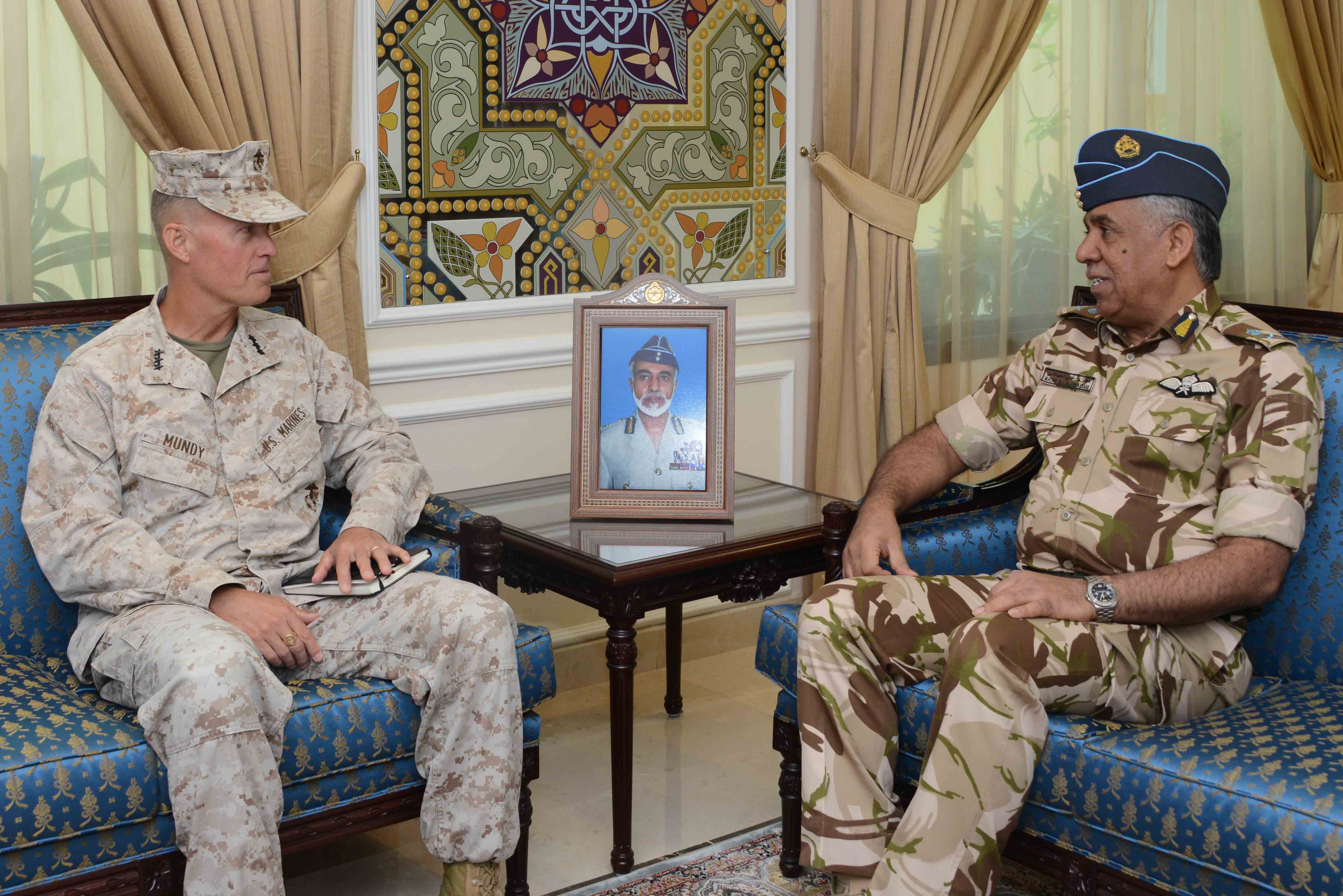 استقبل اللواء الركن طيار مطر بن علي العبيداني قائد سلاح الجو السلطاني العماني بمكتبه بمعسكر المرتفعة اليوم الفريق كارل مندي قائد مشاة البحرية الأمريكية بالقيادة الوسطى الأمريكية الذي يزور السلطنة حاليًا والوفد المرافق له.