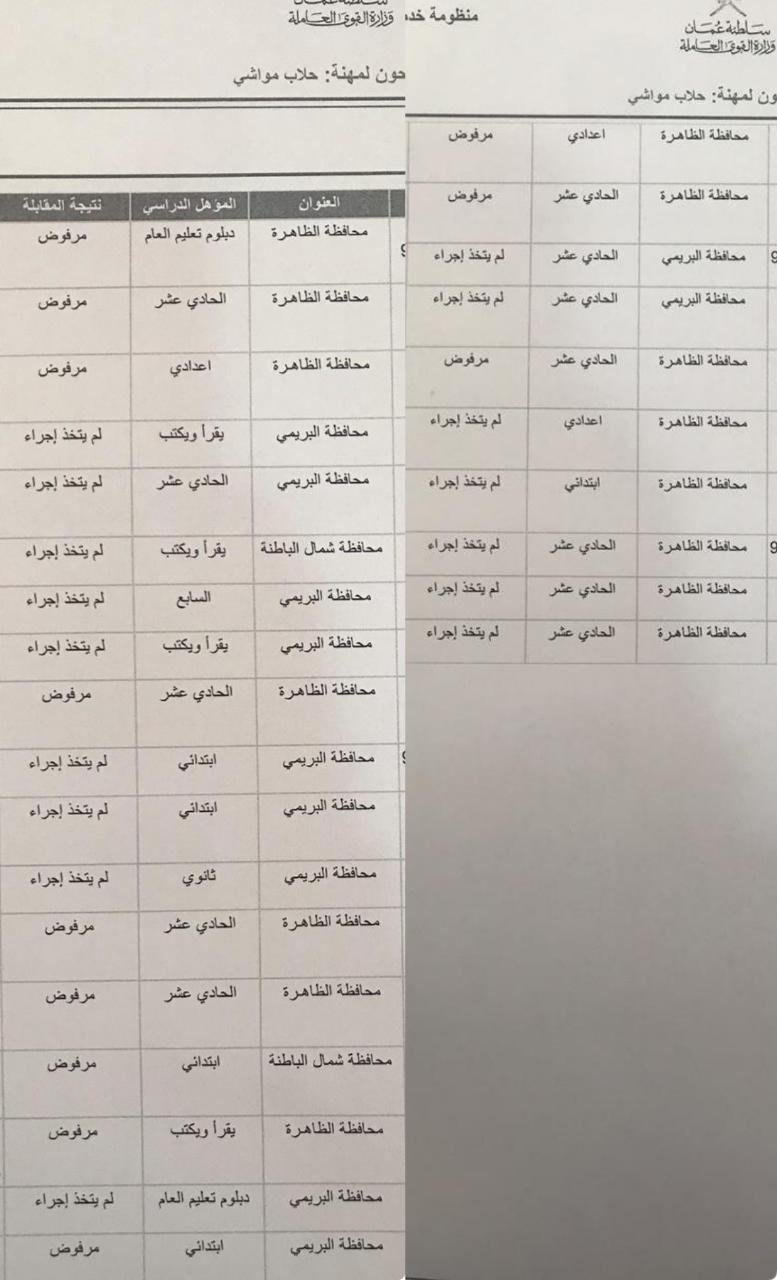 ثانيا: الوظيفة معروضة لمن يرغب من الباحثين عن عمل ممن هم أقل من الدبلوم العام وقد رشح عدد من الباحثين عن عمل أنفسهم برغبة منهم في ذلك وتراوحت مؤهلاتهم بين من يقرأ ويكتب وحتى الصف الثاني عشر.