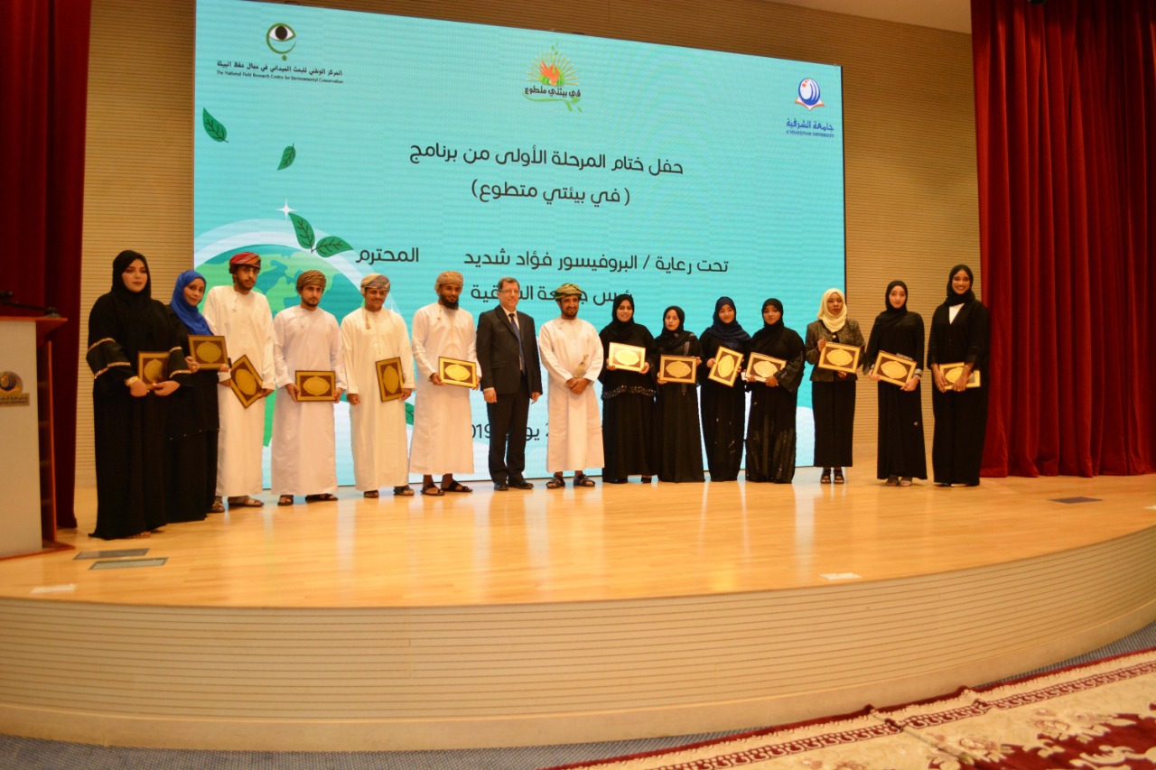 اختتمت صباح أمس ( الأربعاء ) بجامعة الشرقية المرحلة الأولى من البرنامج التوعوي التدريبي ” في بيئتي متطوع” لإعداد مدربين في مجال التطوع البيئي في السلطنة ، الذي نظمه المركز الوطني للبحث الميداني في مجال حفظ البيئة بديوان البلاط السلطاني بالتعاون مع جامعة الشرقية وبمشاركة عدد من الجهات الحكومية والمؤسسات الأكاديمية والبحثية في السلطنة ، وذلك تحت رعاية البروفسور فؤاد شديد رئيس جامعة الشرقية ، وبحضور الدكتور سيف بن راشد الشقصي المدير التنفيذي للمركز الوطني للبحث الميداني في مجال حفظ البيئة ، وعدد من المسؤولين في الجهات الحكومية المسؤولة عن البيئة . وتم خلال الحفل تخريج الدفعة الأولى من طلبة هذا البرنامج الذي استمر في مرحلته الأولى أكثر من سنتين .