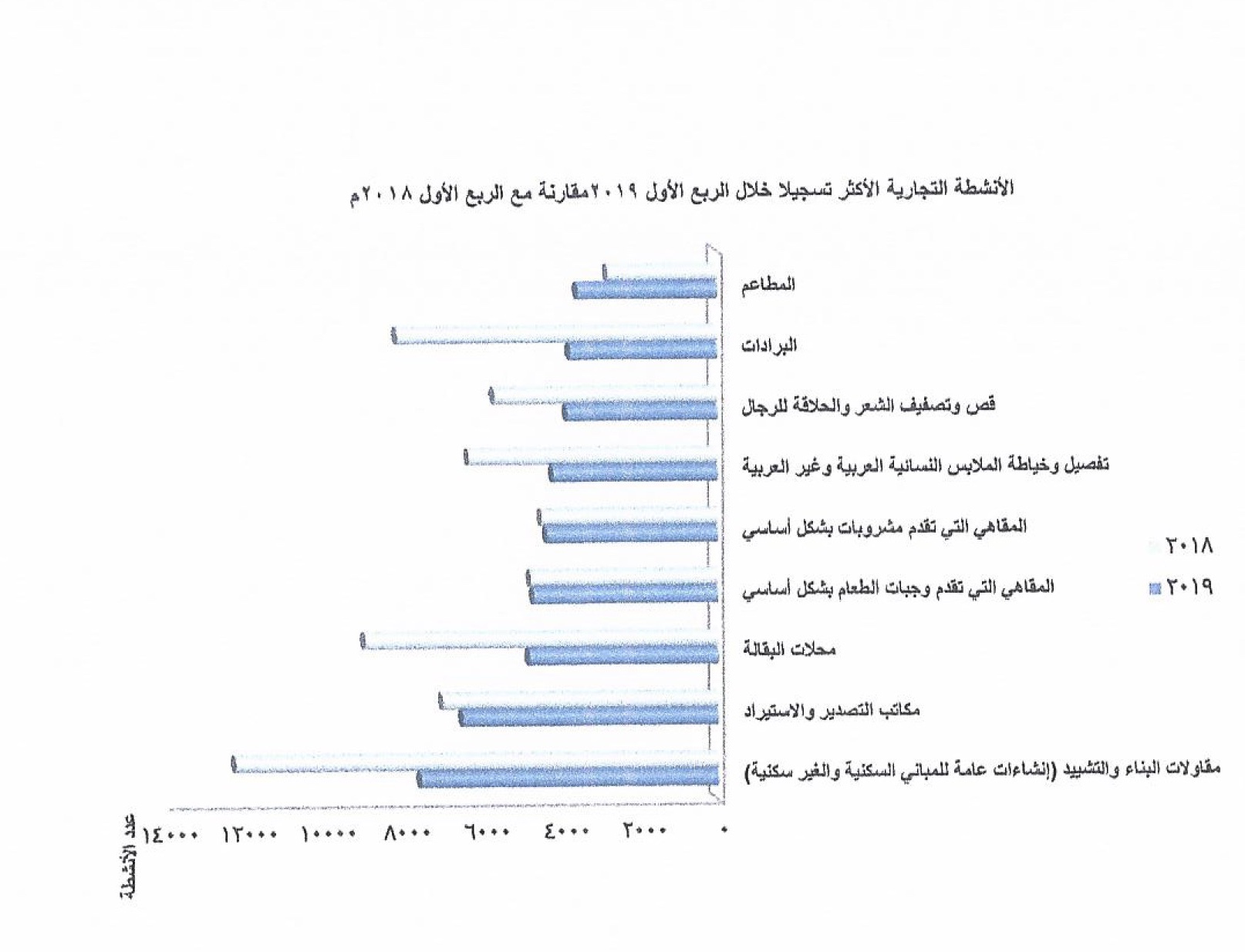 بلغ عدد الأنشطة التجارية الأكثر تسجيلا خلال الربع الأول من العام ٢٠١٩م (٤٠٩٦٤ نشاطاً .