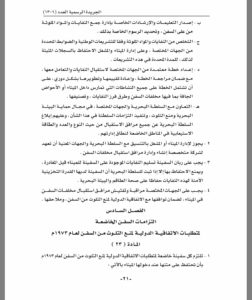 استنادا إلى القانون البحري الصادر بالمرسوم السلطاني رقم ٣٥ / ٨١ ، و إلى المرسوم السلطاني رقم ٢٥ / ٨١ بالموافقة على انضمام حكومة سلطنة عمان إلى الاتفاقية الدولية لمنع التلوث من السفن لعام ١٩٧٣ ، و إلى قانون تنظيم الملاحة البحرية في المياه الإقليمية الصادر بالمرسوم السلطاني رقم ٩٨ / ٨١ ، و إلى المرسوم السلطاني رقم ٦٠ / ٨٤ بإنضمام السلطنة إلى الاتفاقيتين الدوليتين لقواعد منع التصادم في البحار و لسلامة الأرواح في البحار ، و إلى المرسوم السلطاني رقم ٩٣ / ٨٤ بالتصديق على انضمام السلطنة للاتفاقية الدولية لعام ١٩٦٩ بشأن المسؤولية المدنية عن الضرر الناجم عن التلويث النفطي ، وبروتوكولها لعام ١٩٧٦ ، وإلى قانون حماية البيئة و مكافحة التلوث الصادر بالمرسوم السلطاني رقم ١١٤ / ٢٠٠١ وبناء على ما تقتضيه المصلحة العامة ، تقرر :