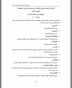 المادة الأولى : يعمل في شأن السلامة ومنع التلوث البحري في الموانىء العمانية ، بأحكام اللائحة المرفقة .