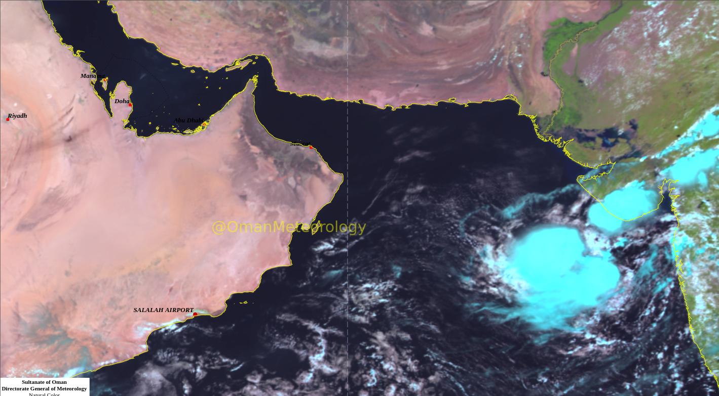 قالت الأرصاد الجوية على حسابها الرسمي في ” تويتر” أنه تم رصد منطقة ضغط جوي منخفض شرق بحر العرب ومن المحتمل تعمقه إلى منخفض مداري خلال 48 ساعة قادمة دون أي تأثير على سواحل السلطنة خلال ثلاثة أيام قادمة.