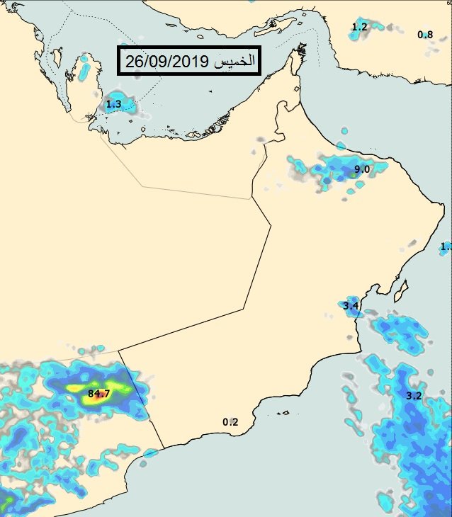 أكدت الأرصاد الجوية على حسابها الرسمي في “تويتر” على توفر مؤشرات بنشاط التكونات المحلية وهطول أمطار متفرقة تكون رعدية أحيانا على جبال الحجر والولايات المجاورة ابتداءا من اليوم وخلال اليومين القادمين (مخرجات النماذج العددية العمانية لكمية الأمطار المتوقعة.